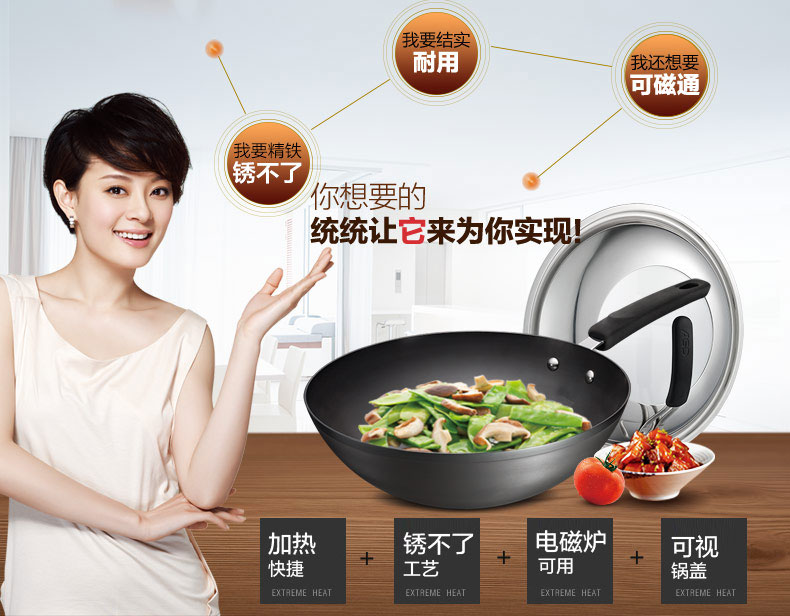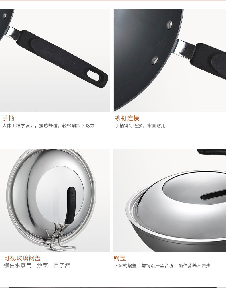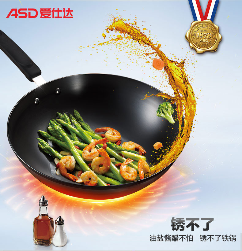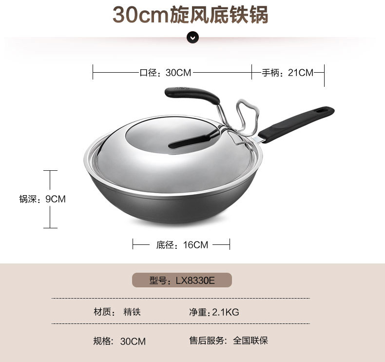 京东自营商超同款爱仕达 炒锅 铁锅/无涂层 30cm精铁炒菜锅锈不了炒煎锅LX8330E 电磁炉明火通用