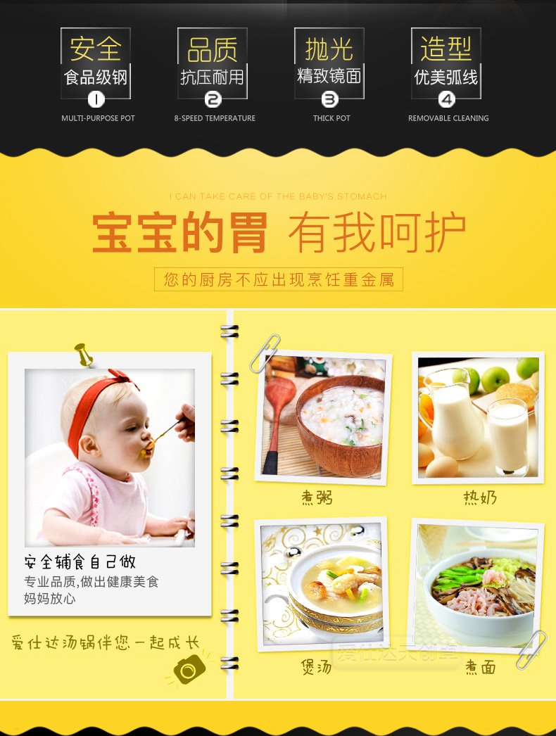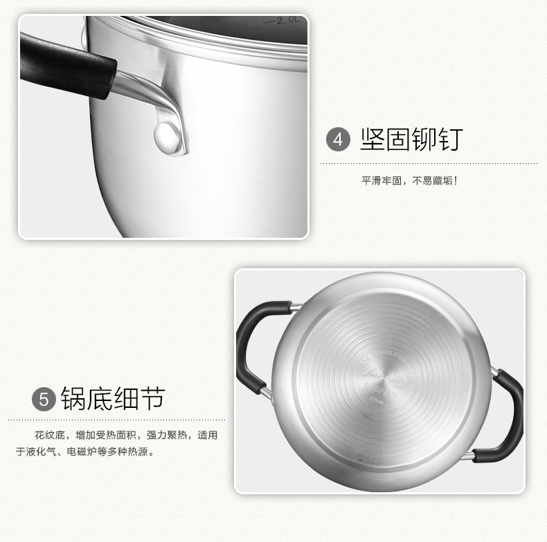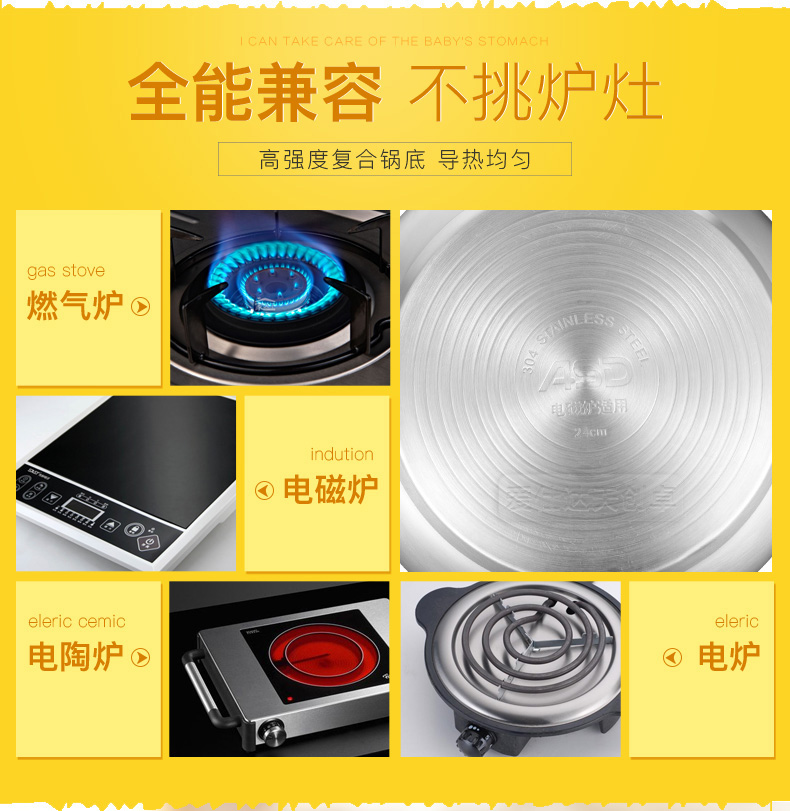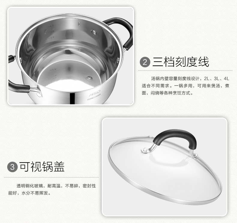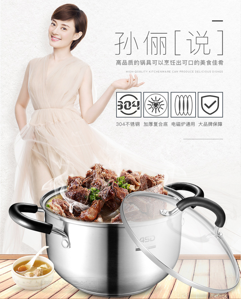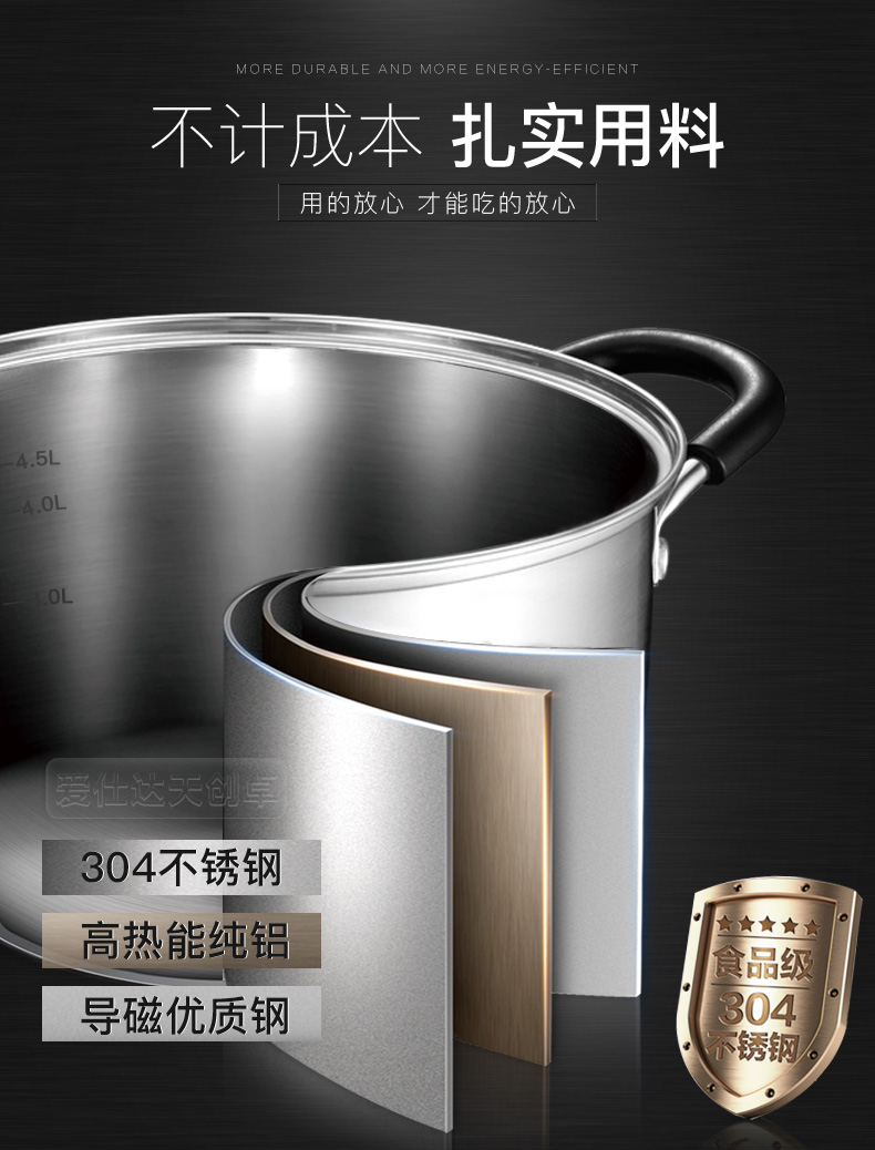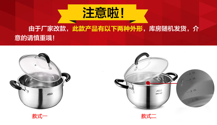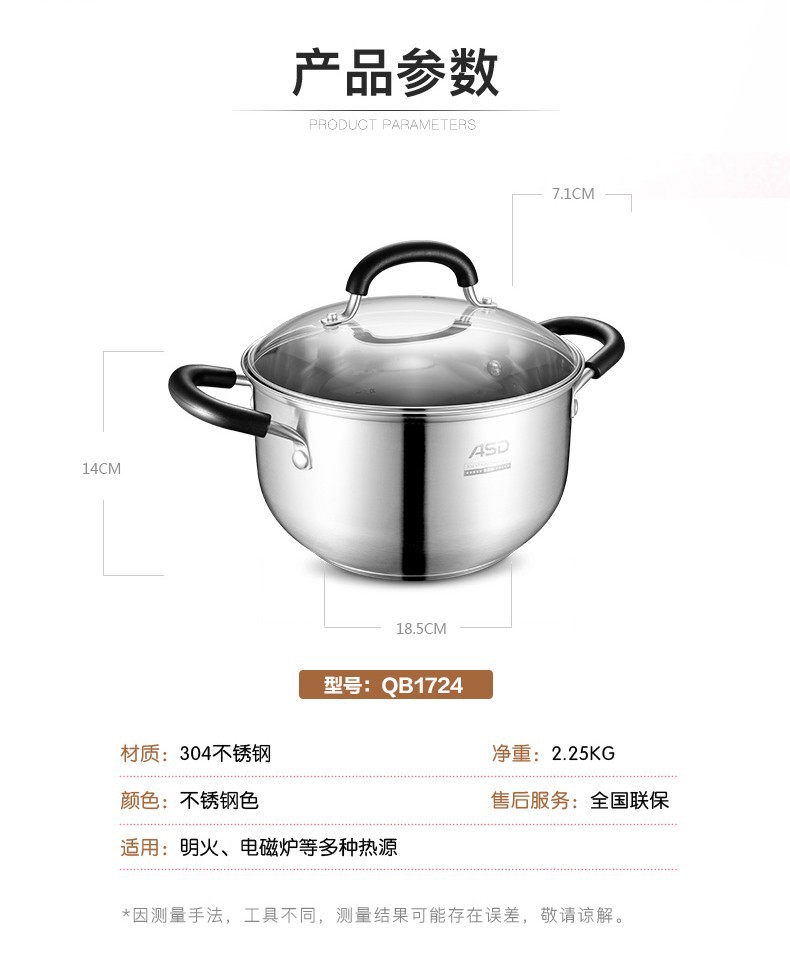 京东自营爱仕达(ASD)汤锅304不锈钢复底加厚煲汤锅煮面煮粥热奶锅宝宝辅食锅 电磁炉明火通用 QB1722 22cm