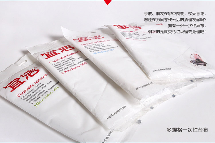 【商品货号】:Y-9968 【商品材质】:PE 【尺寸规格】:140cmx140cm(10只) 【包装清单】:一次性台布(10只装)x1