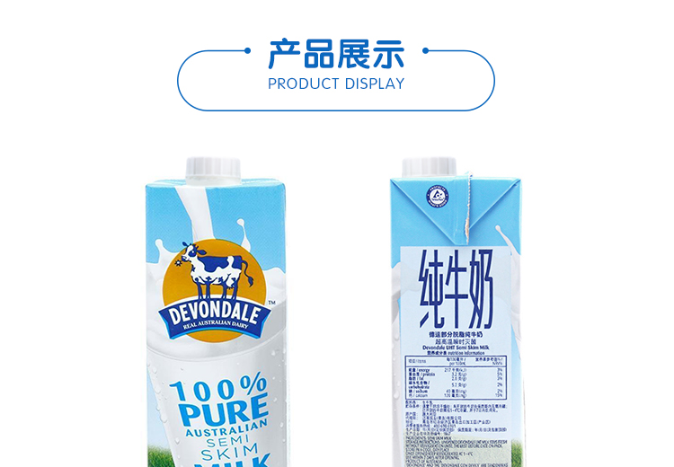 京东自营德运 (Devondale) 澳大利亚原装进口牛奶 部分脱脂纯牛奶1L*10 整箱装