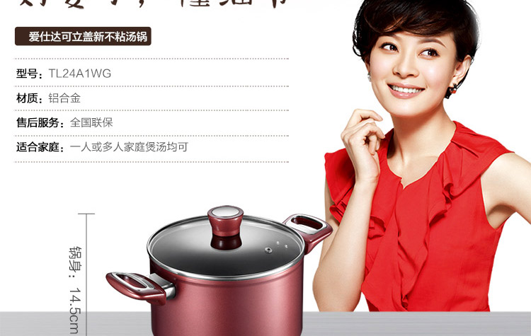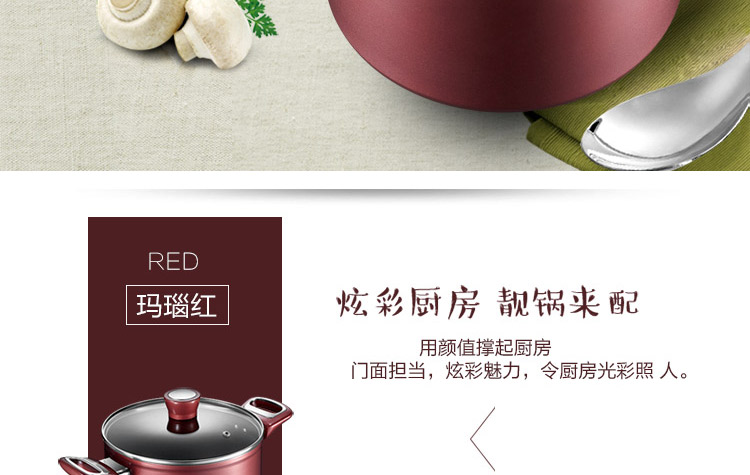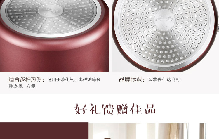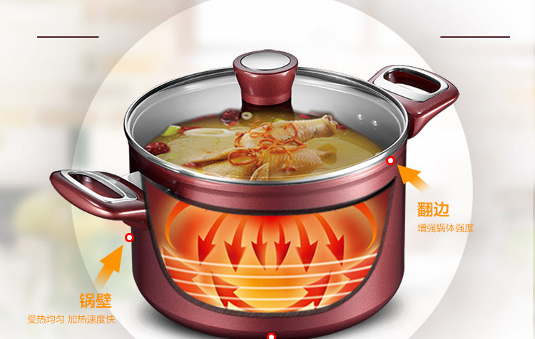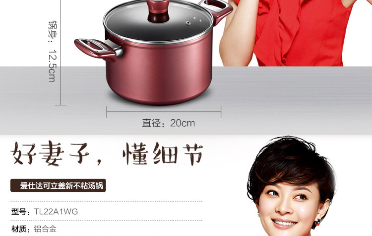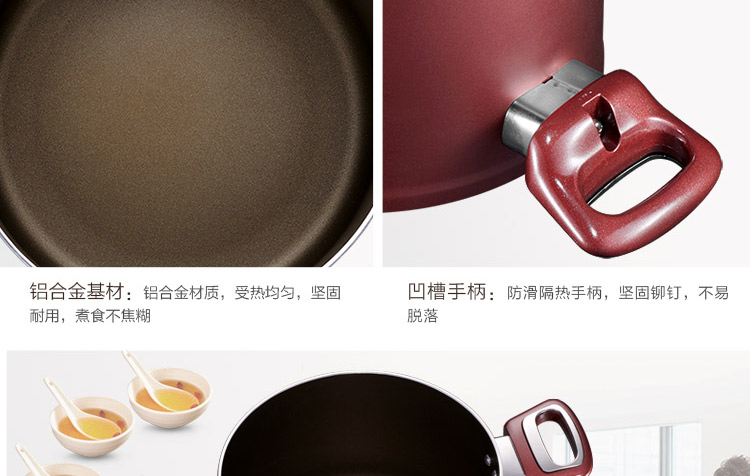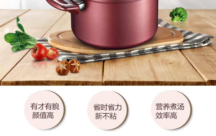 京东自营爱仕达(ASD)汤锅 新不粘复底铝合金炖锅煮奶煮粥锅 电磁炉燃气通用 酒红色 TL20A1WG-C 20cm