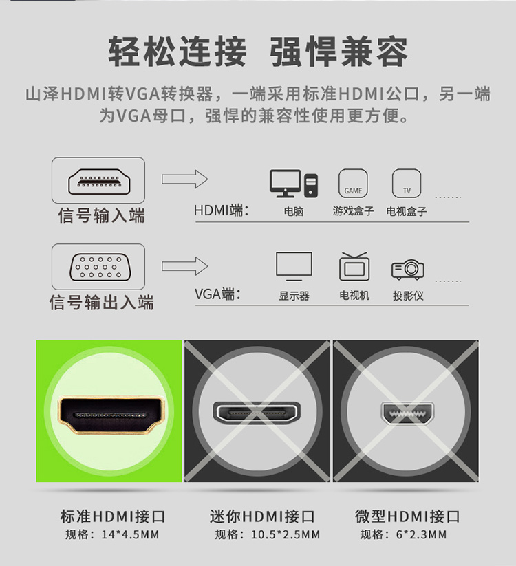 京东自营山泽(SAMZHE) HDMI转VGA转换器 高清信号转接线 笔记本电脑/电视盒子接电视投影仪 镀金版白色20CM ZJX-080