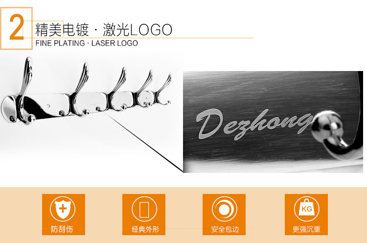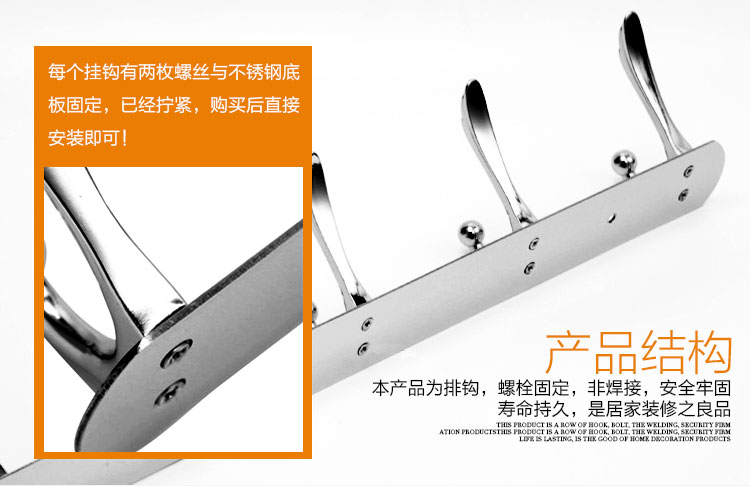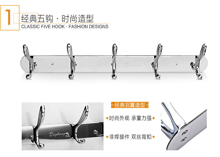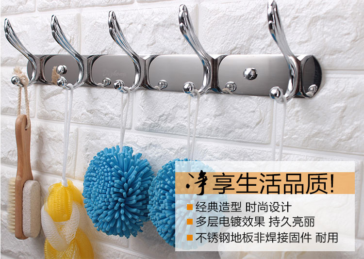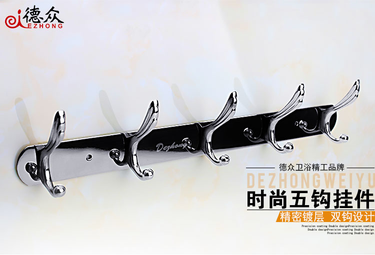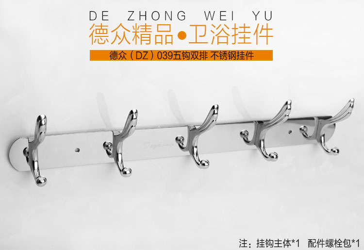 京东自营德众(DZ)039五钩 衣帽钩五排双钩 不锈钢挂钩毛巾钩 厨房卫浴间玄关五金挂件
