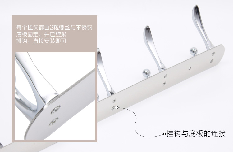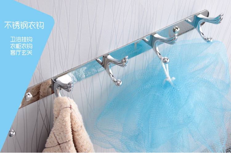 京东自营德众(DZ)039六钩 不锈钢衣钩帽钩 挂件厨房卫浴间玄关五金挂件排钩