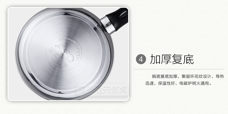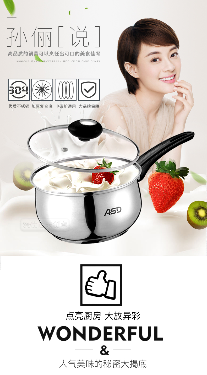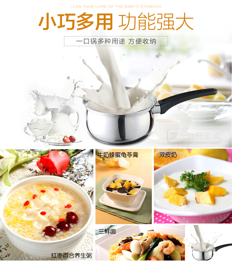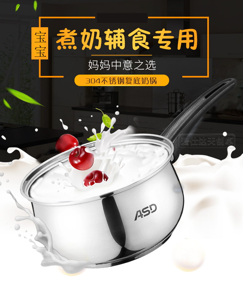 京东自营爱仕达(ASD)奶锅304不锈钢复底煮面锅煮粥小汤锅婴儿辅食锅16cm 电磁炉燃气通用 C1916