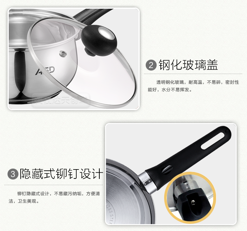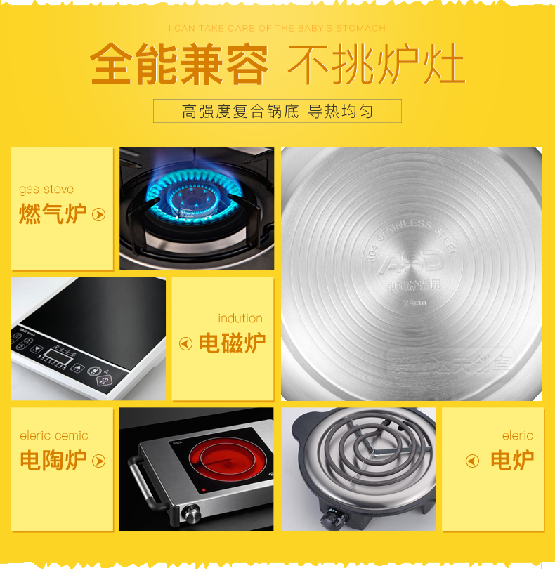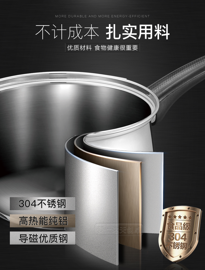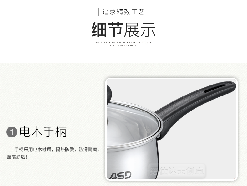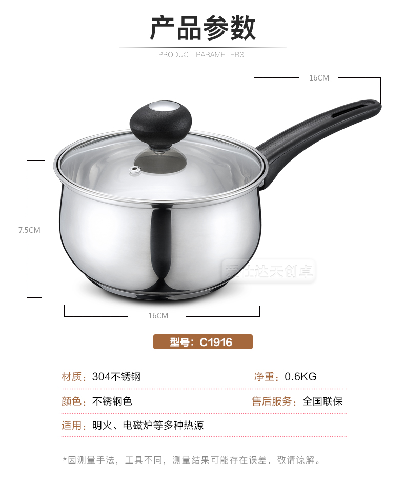 京东自营爱仕达(ASD)奶锅304不锈钢复底煮面锅煮粥小汤锅婴儿辅食锅16cm 电磁炉燃气通用 C1916
