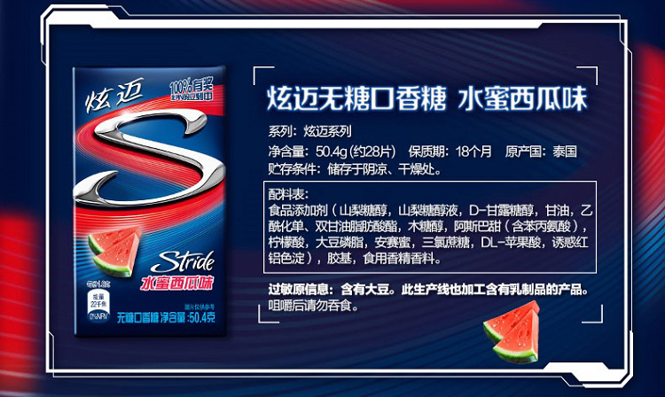 京东自营沃尔玛炫迈 泰国进口 无糖口香糖 炫动薄荷味 50.4g