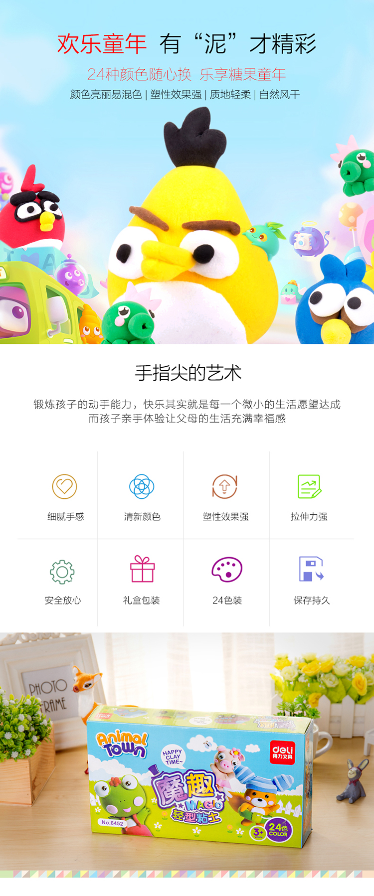 京东自营得力(deli)6452 魔趣轻型粘土套装/彩泥套装 3d彩泥粘土玩具 24色装