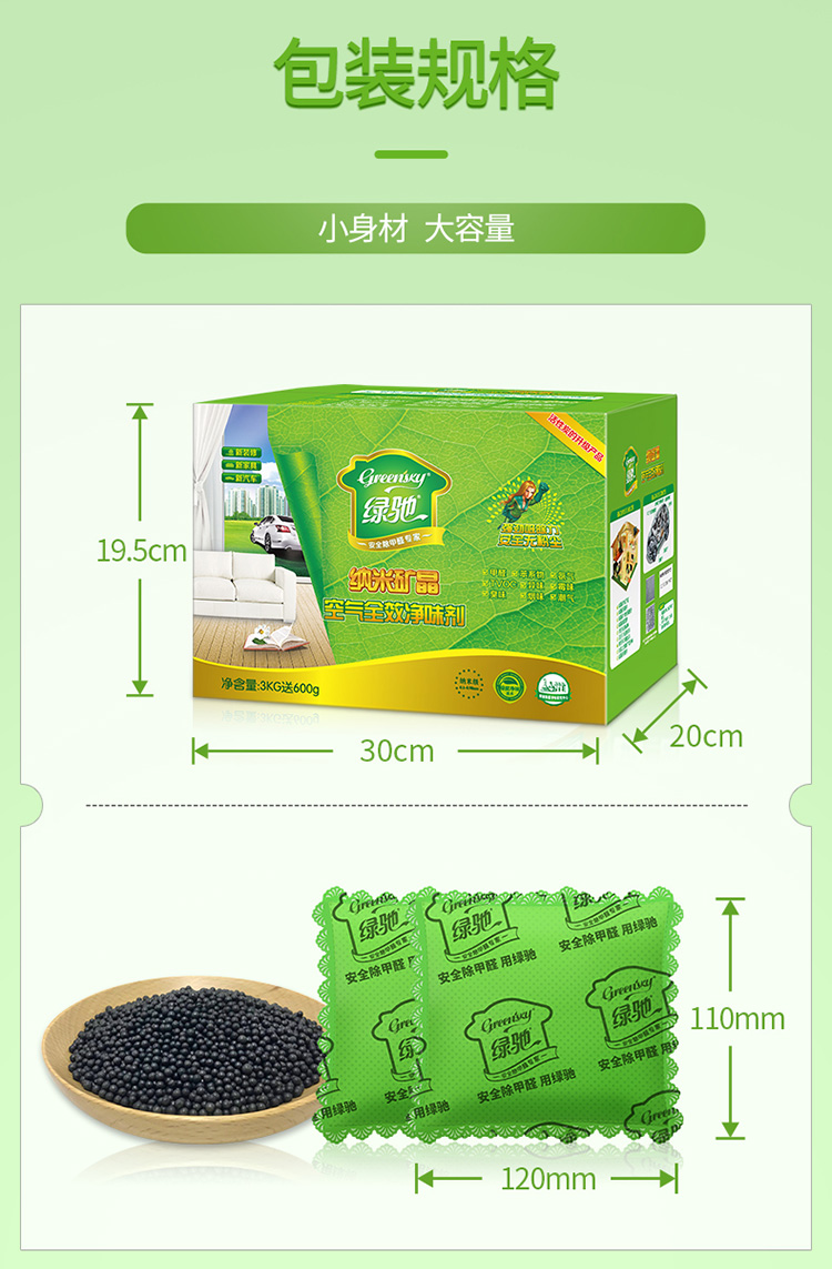 京东自营绿驰 3600g纳米矿晶装修家具汽车甲醛清除剂 去除甲醛苯除油漆味 竹炭活性炭碳包强力除味剂
