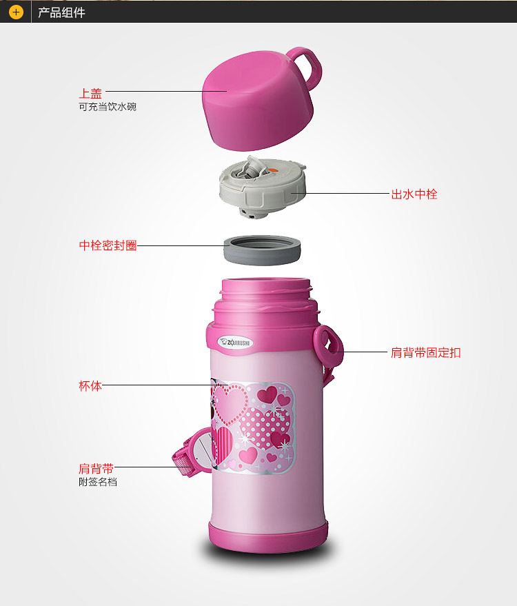 京东自营张新成同款象印(ZO JIRUSHI) 儿童保温杯学生保温壶600ml不锈钢水杯子SC-MC60 PZ粉色
