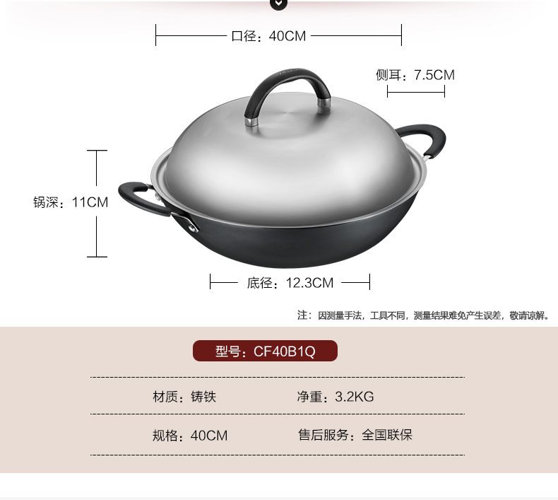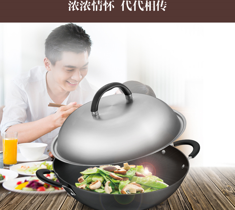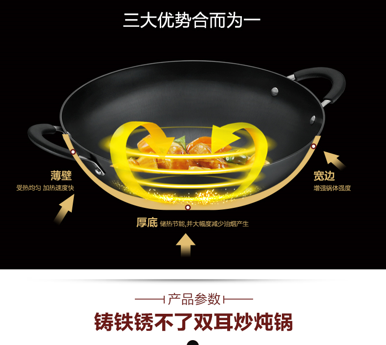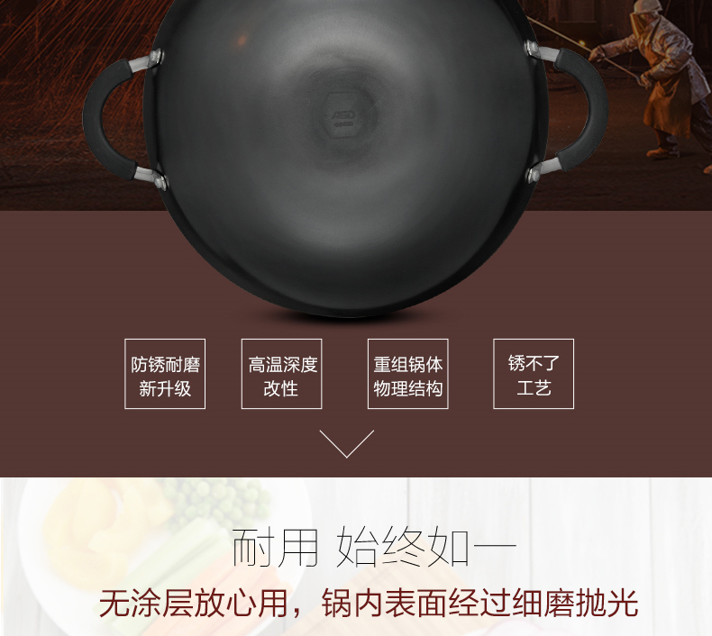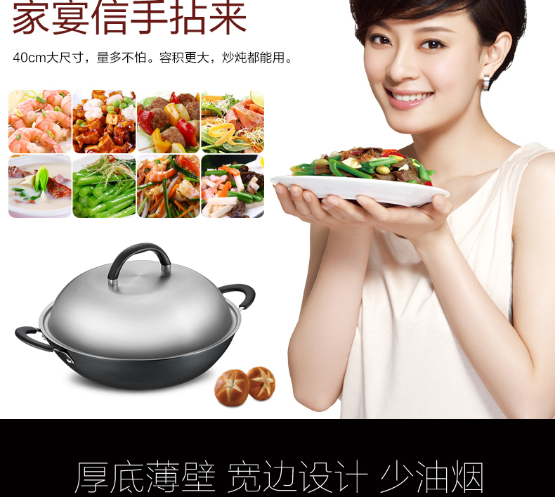 京东自营推荐爱仕达 炒锅 铁锅/无涂层 40cm生铸铁炒菜锅/炖锅 锈不了双耳炒锅 电磁炉明火通用