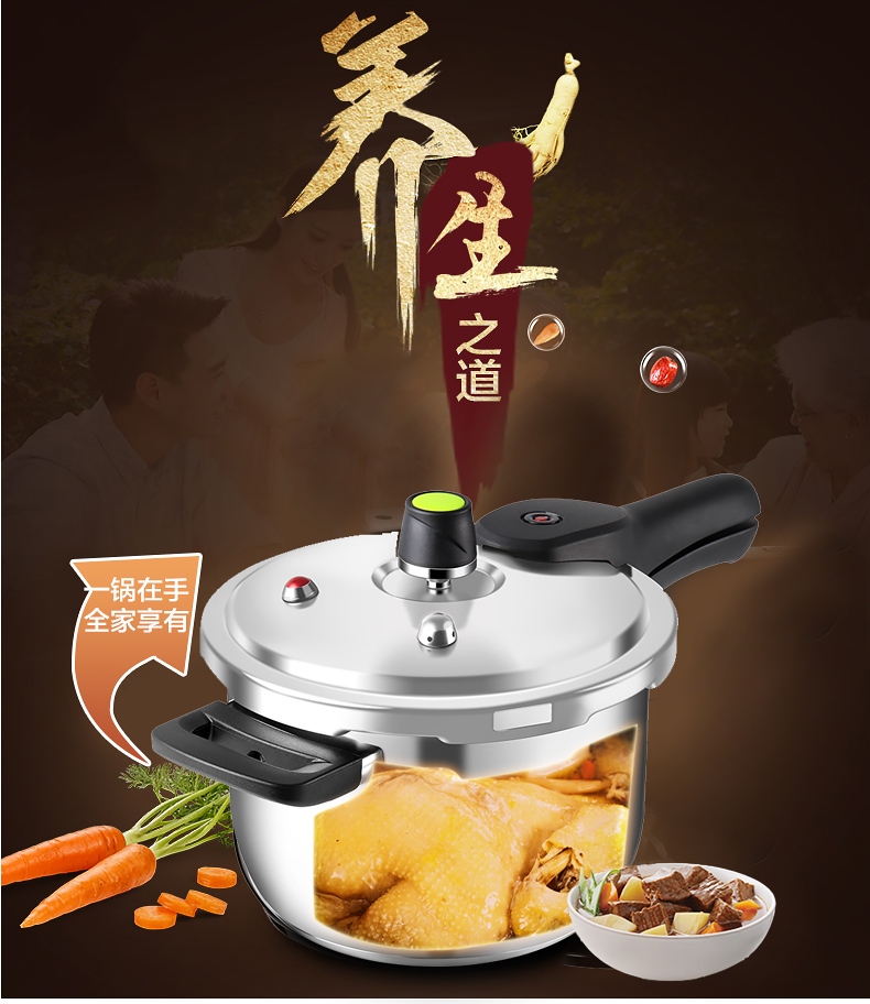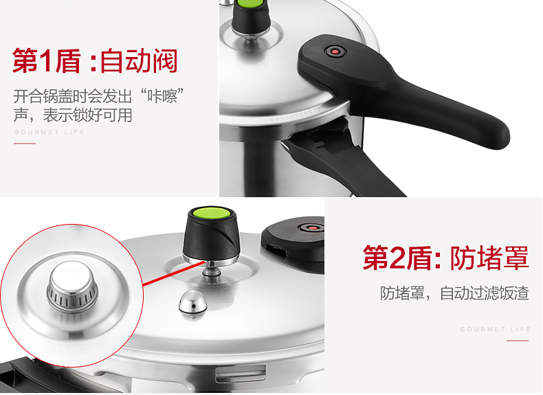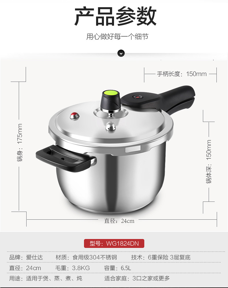 京东自营性价比款爱仕达 高压锅燃气 24cm电磁炉压力锅 304不锈钢/六保险厚底通用 安全防爆