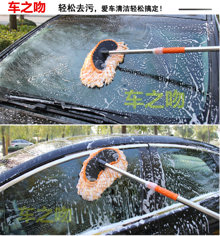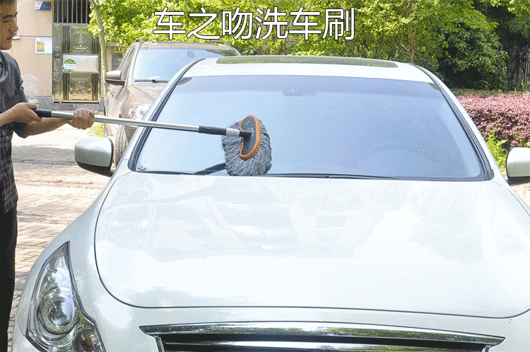 京东自营车之吻 不锈钢加长杆洗车刷 长柄可伸缩洗车刷子 灰色
