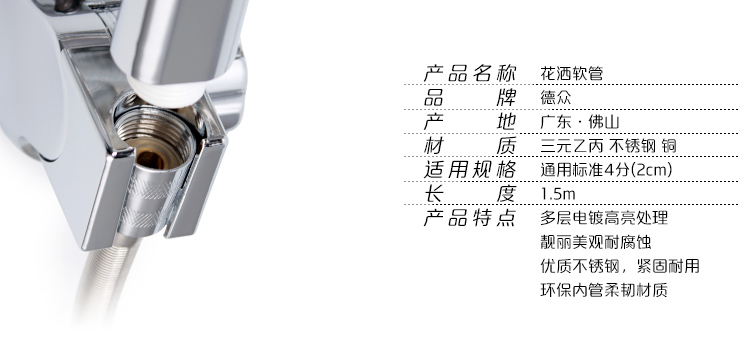 淋浴软管的接头大小都是统一标配规格的,任何手喷都是可以连接的,无需担心能否连接的问题,请放心浏览