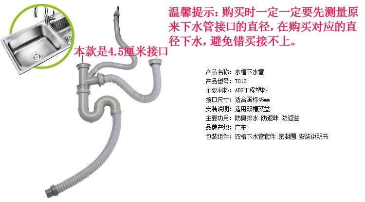 京东自营德众(DZ)7012 厨房水槽下水管 双槽下水器排落水洗菜盆配件 国标4.5cm