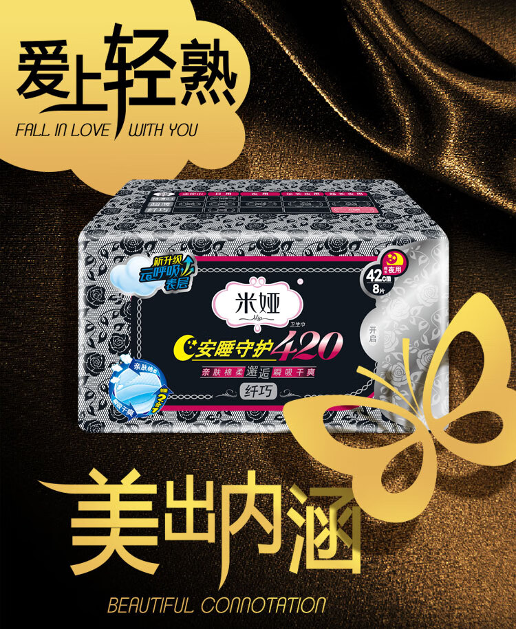 京东自营米娅(mia)纤巧夜用卫生巾420mm 8片装(新老包装随机发货)