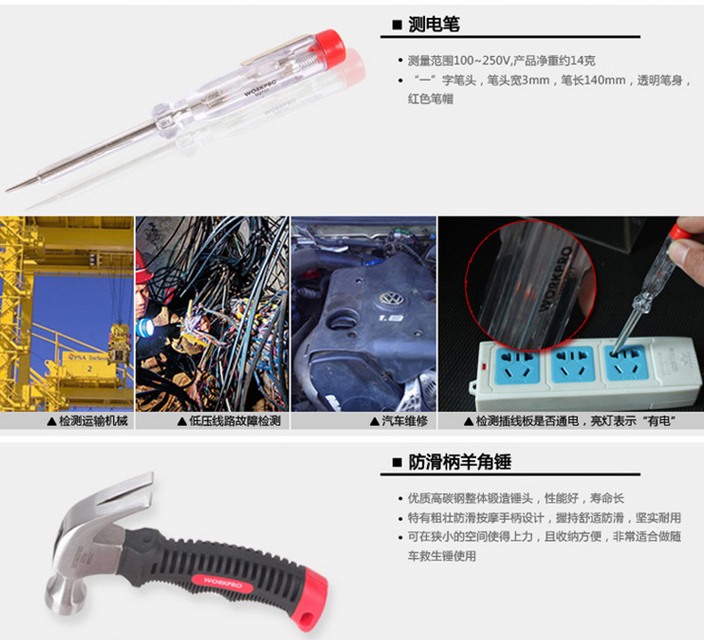 京东自营万克宝(WORKPRO)W1219 家用工具套装多功能手动维修工具包 19件五金工具组套