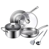 京东自营爱仕达 商超同款俊雅复合304不锈钢三件套锅PS03A1Z 无涂层不锈钢锅具套装组合炒锅套装带炒锅汤锅煎锅
