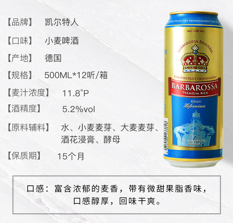 京东自营凯尔特人德国进口小麦啤酒500ml*12听礼盒装