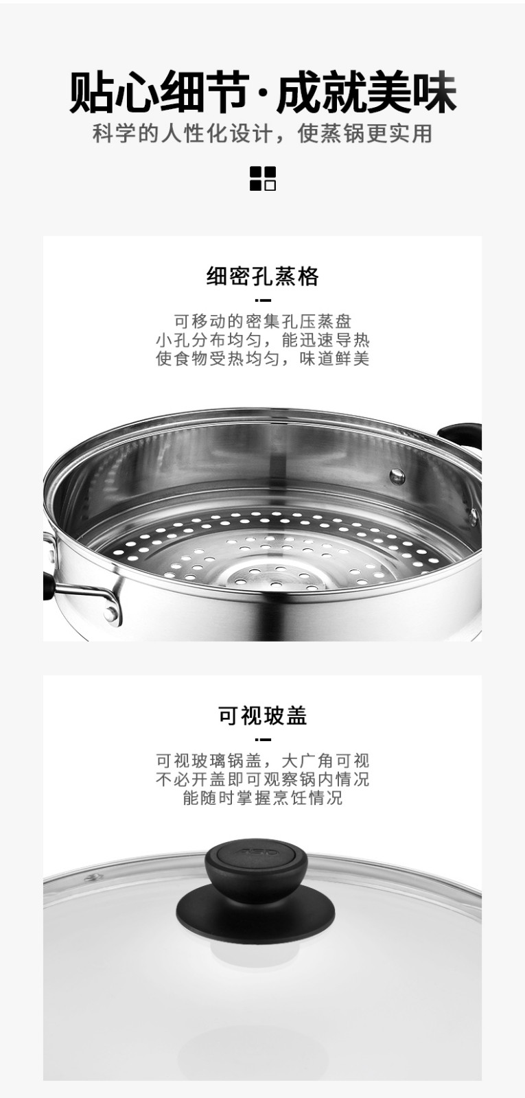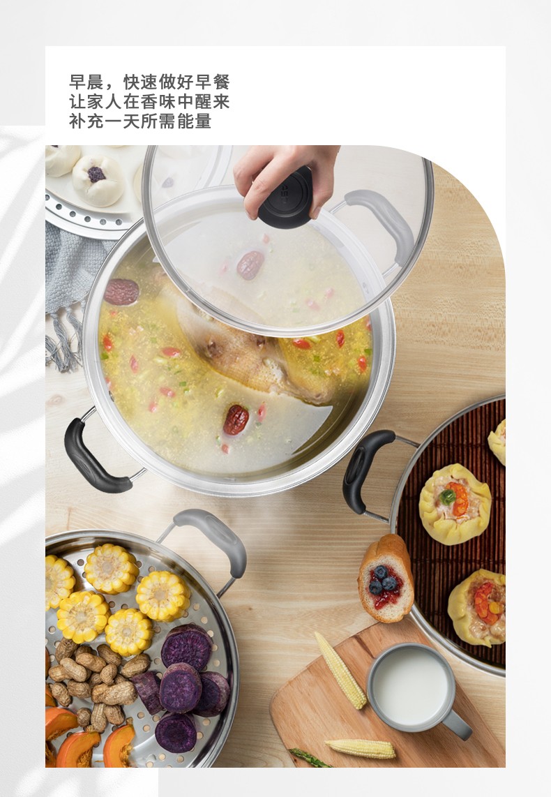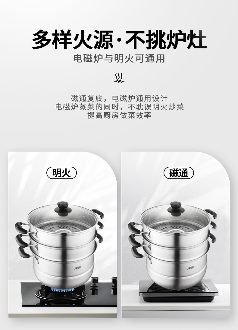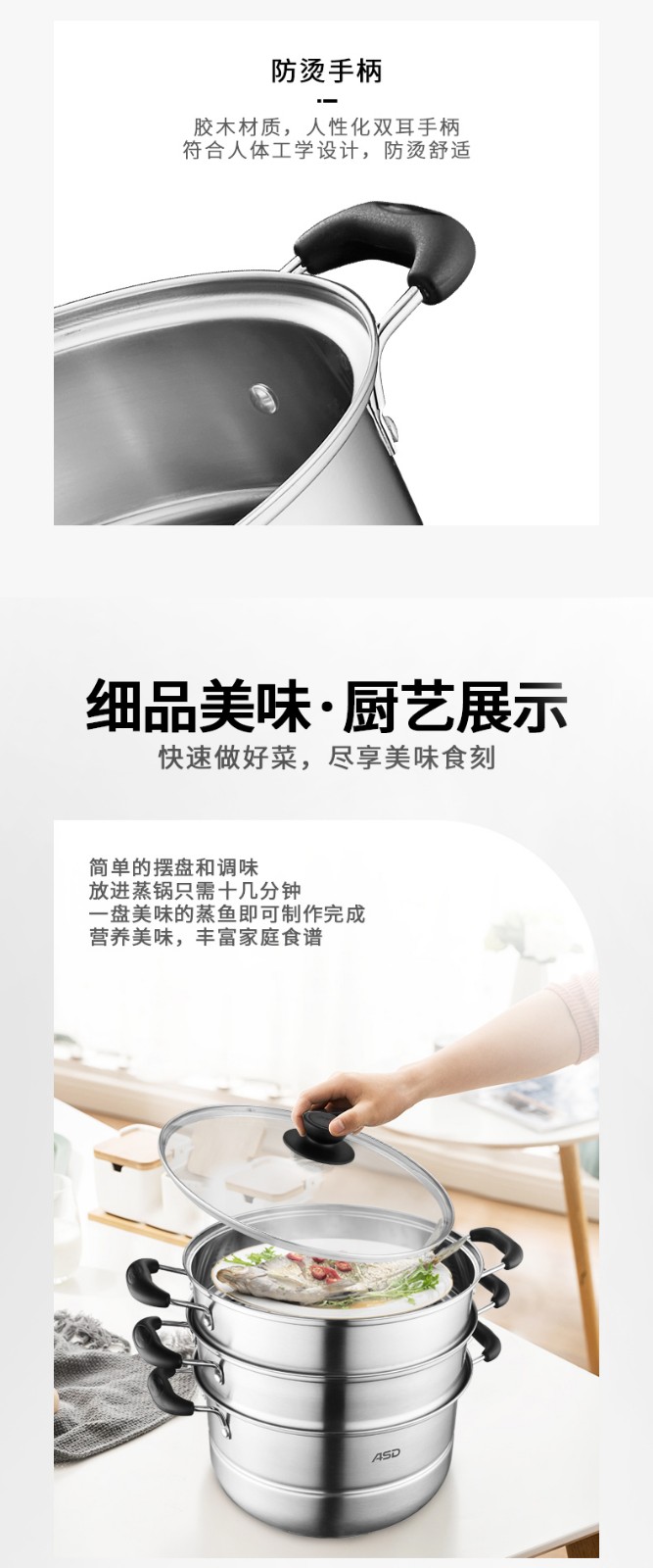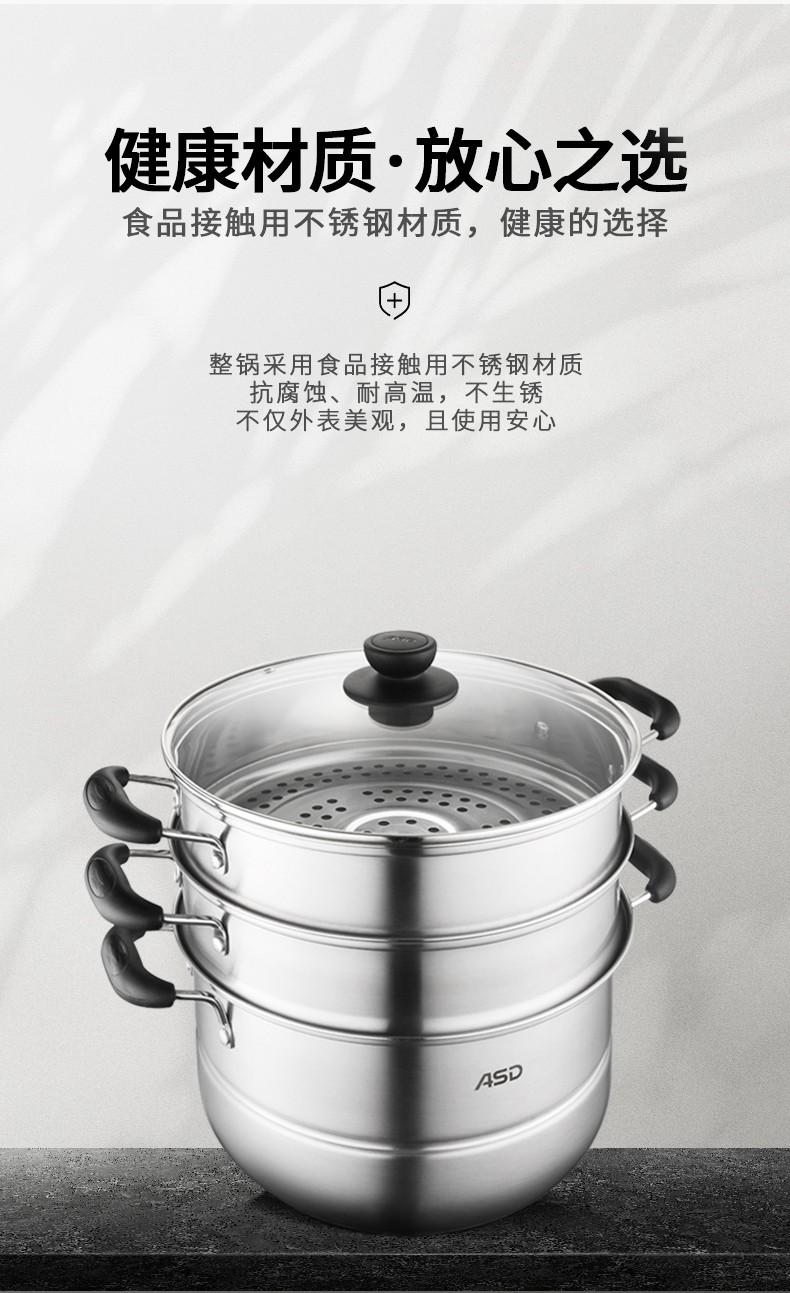 京东自营爱仕达(ASD)蒸锅 不锈钢三层复底炖锅煮锅大容量不串味多用 电磁炉燃气通用 28cm