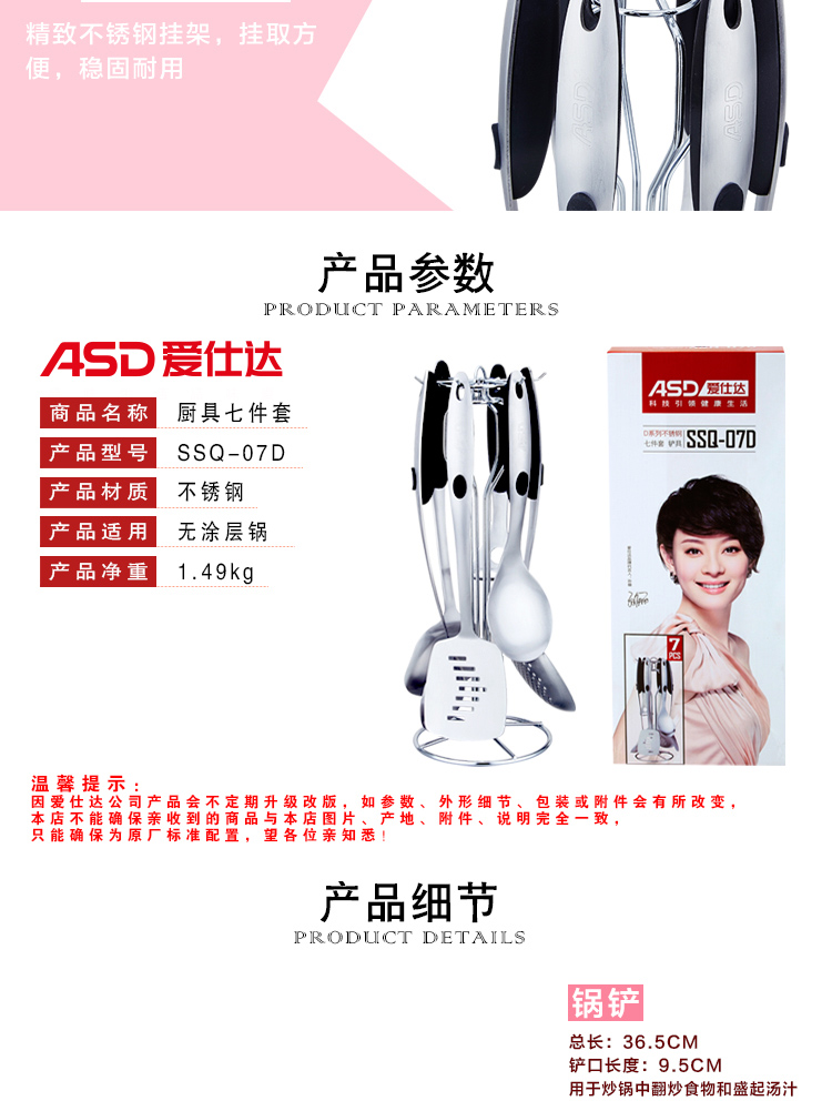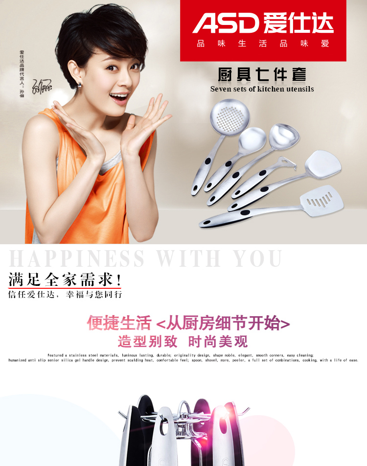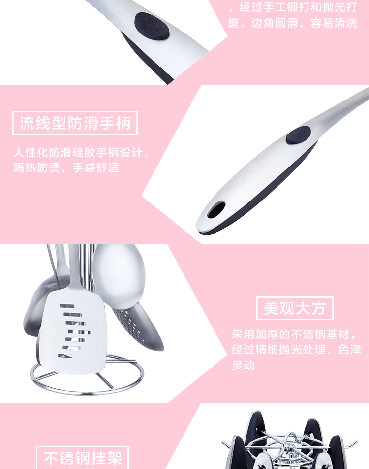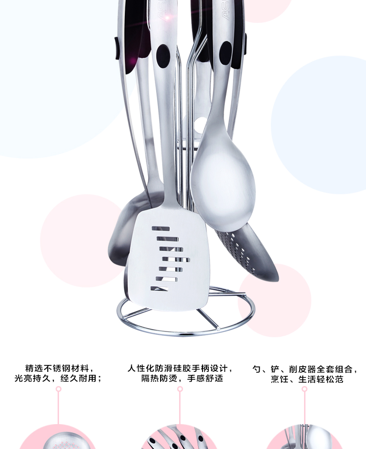 京东自营爱仕达(ASD) 爱仕达ASD旭日不锈钢七件套铲具SSQ-07D