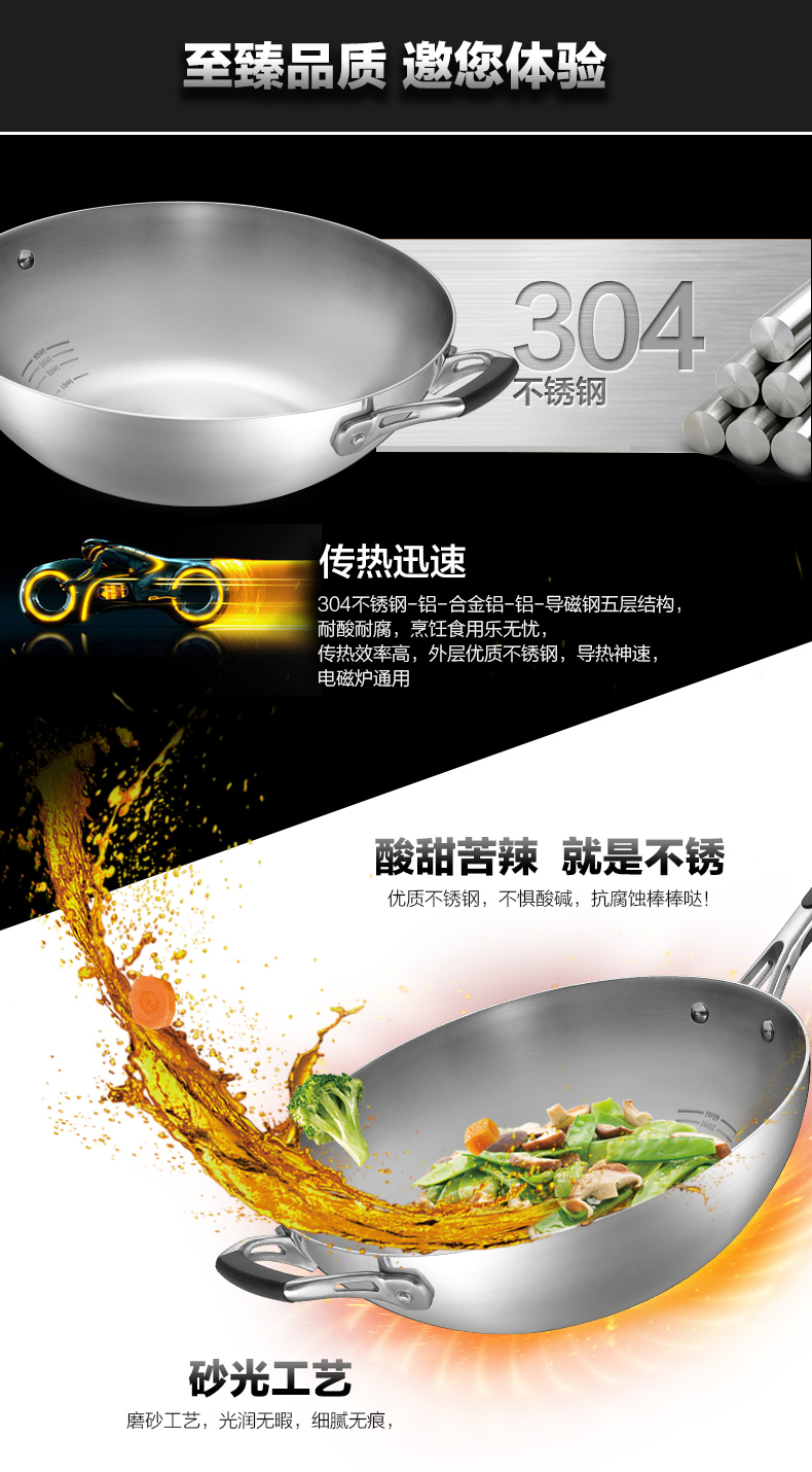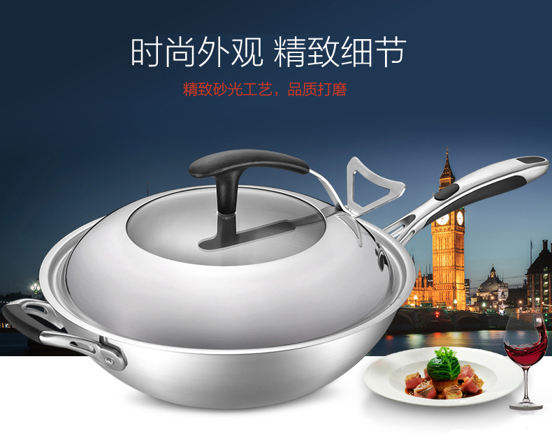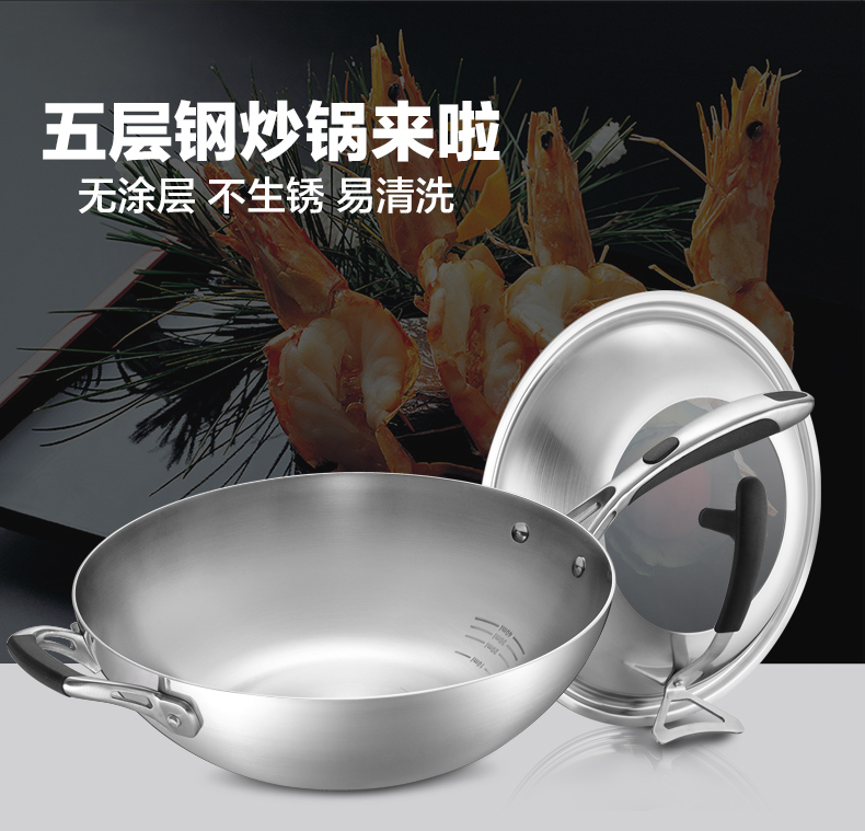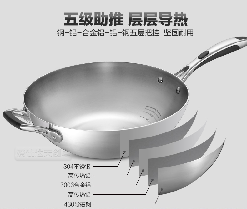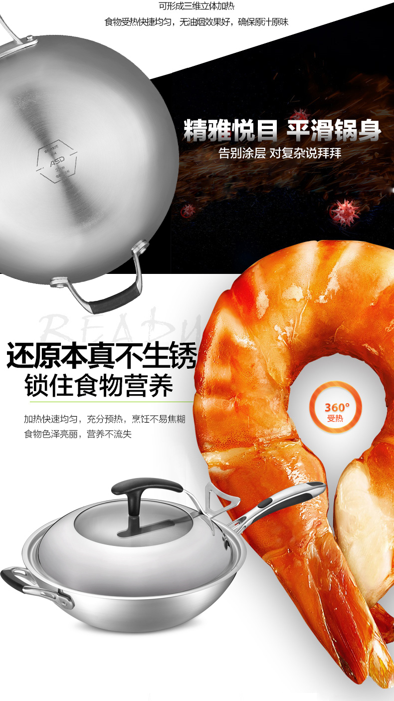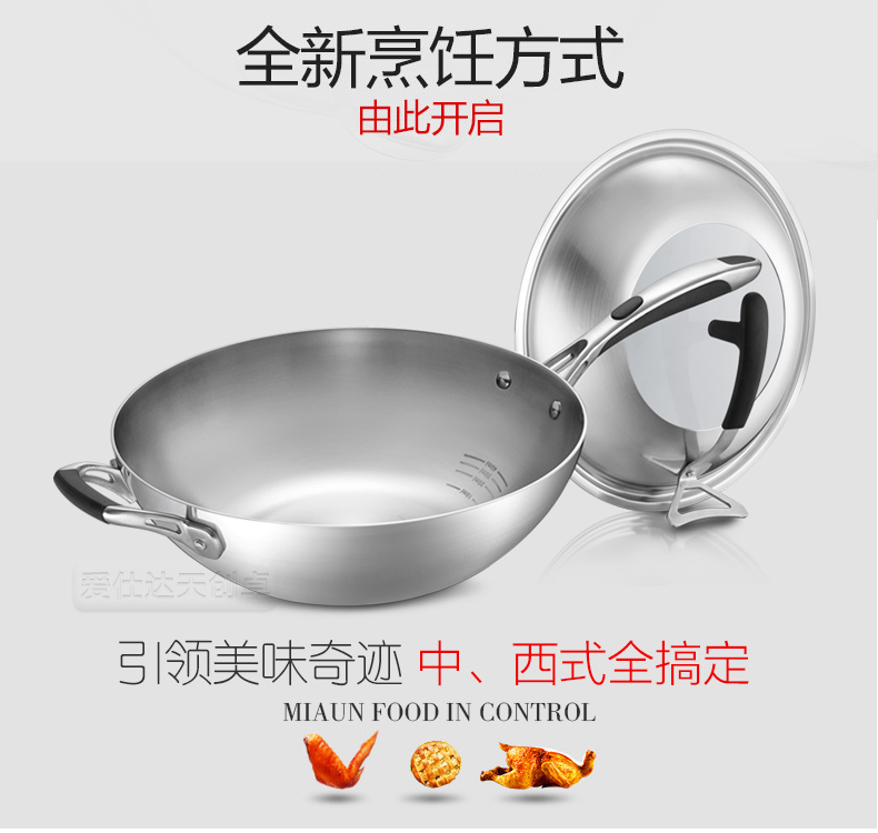 京东自营爱仕达(ASD)炒锅304不锈钢五层复合无油烟无涂层炒菜锅煎锅电磁炉燃气通用 SW1332 32cm