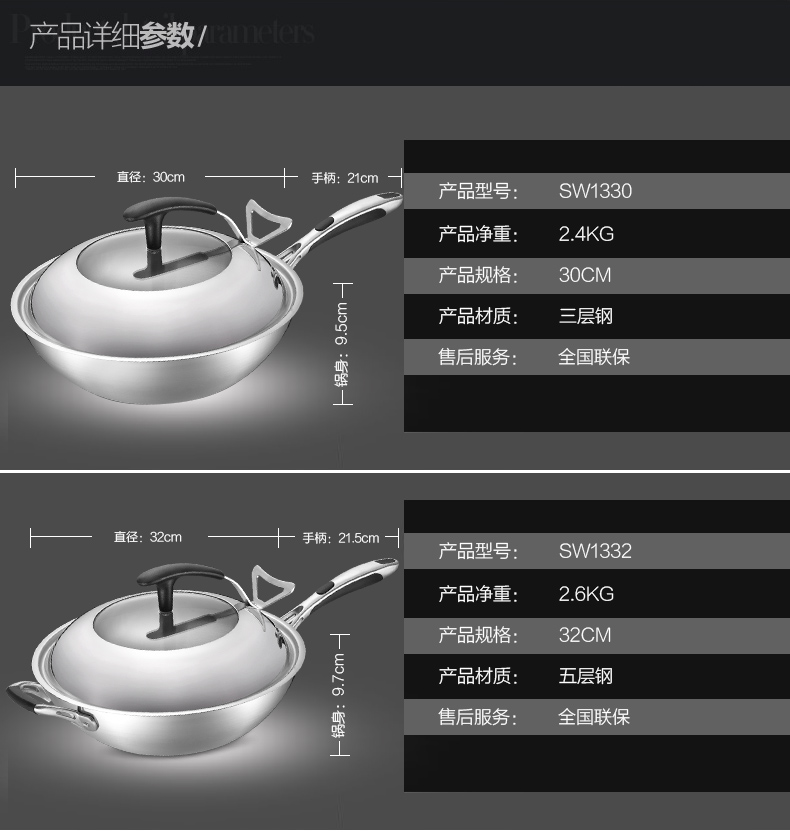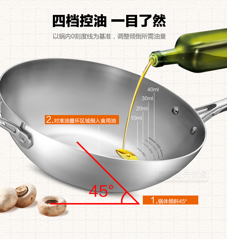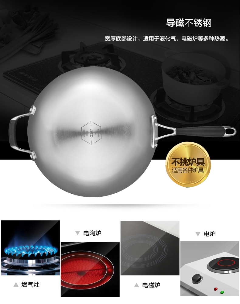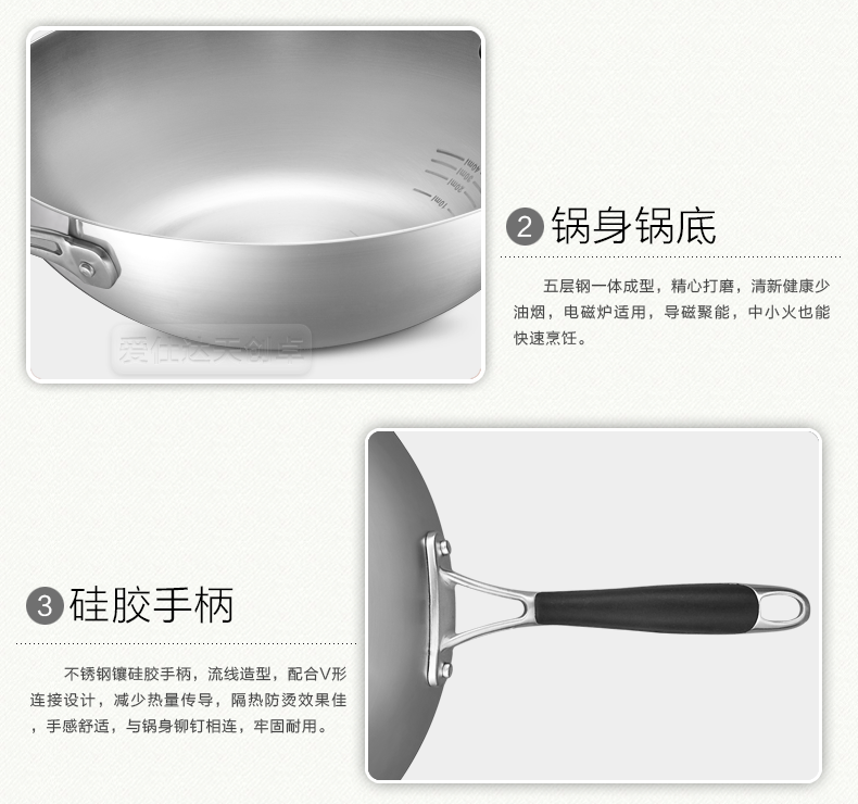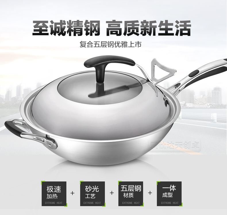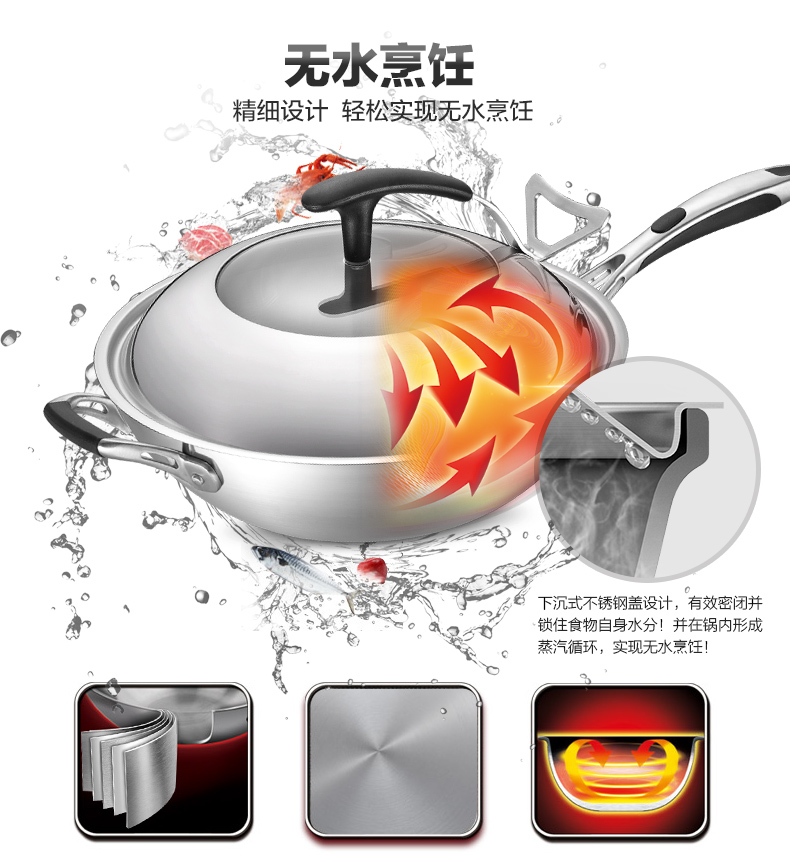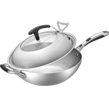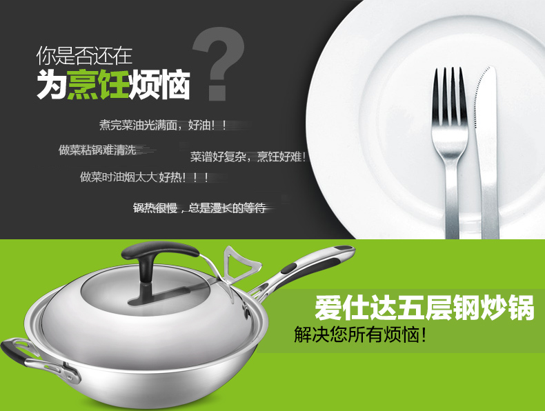 京东自营爱仕达(ASD)炒锅304不锈钢五层复合无油烟无涂层炒菜锅煎锅电磁炉燃气通用 SW1332 32cm