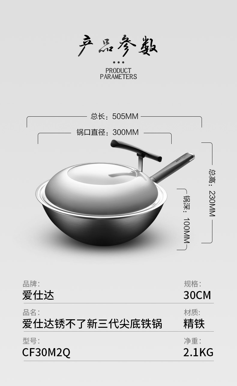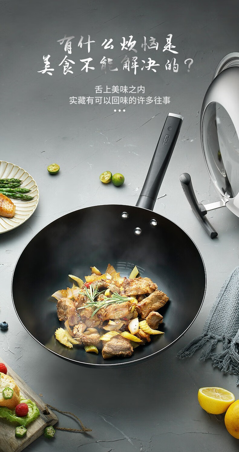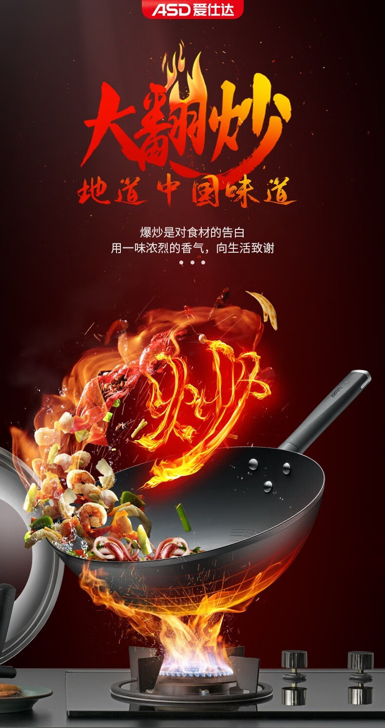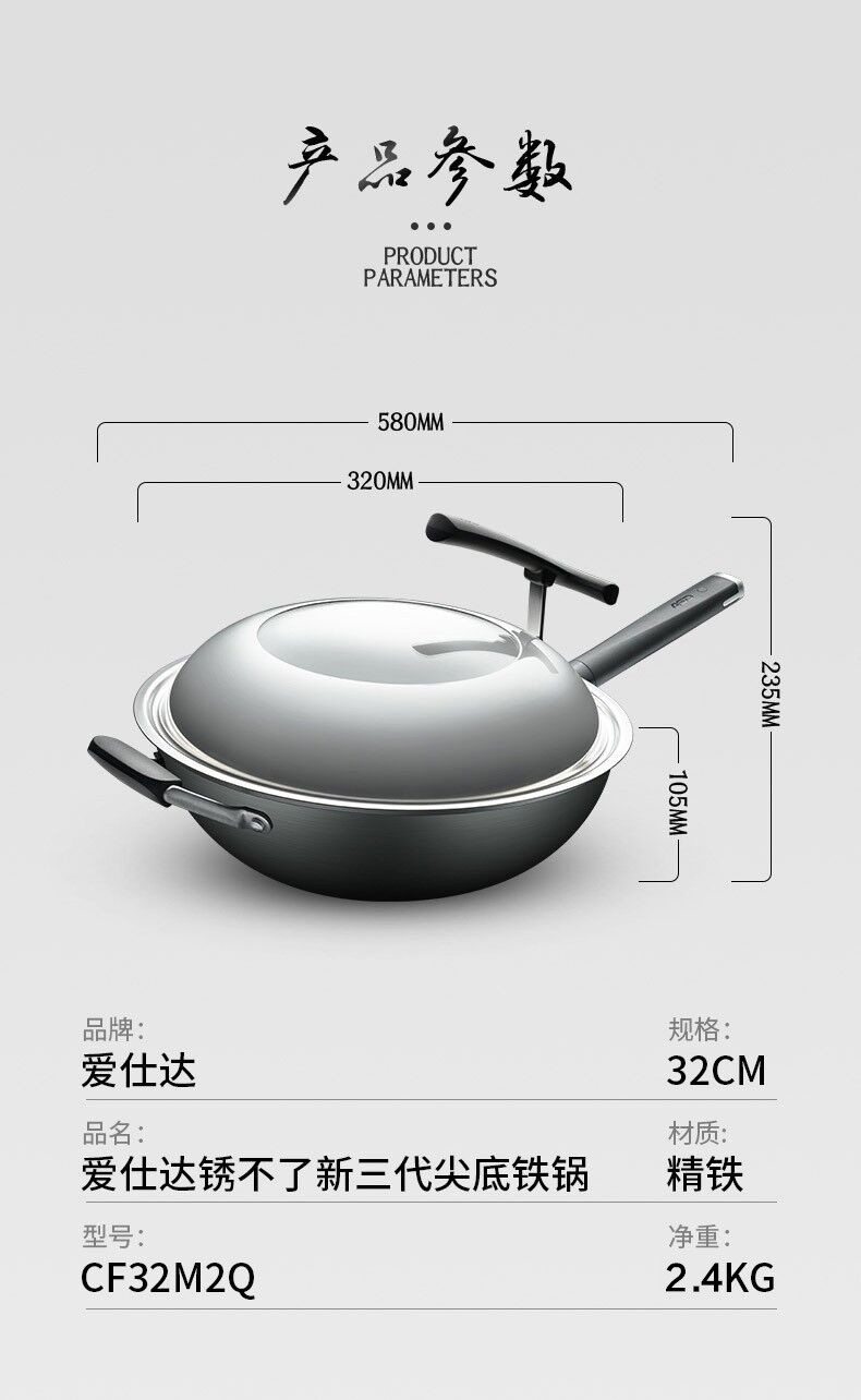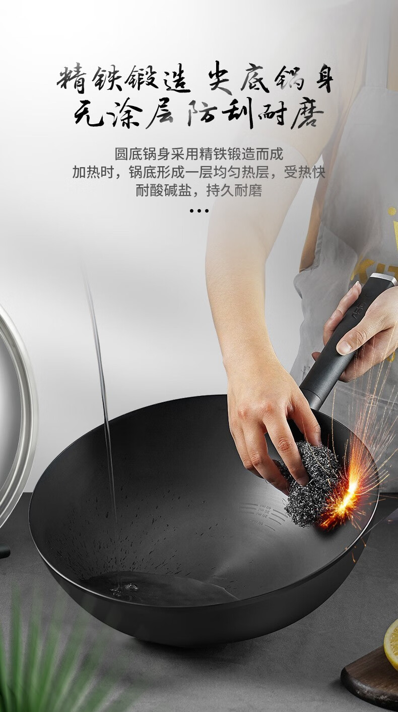 京东自营爱仕达(ASD) 炒锅电磁炉通用无涂层炒菜锅32cm新三代不锈聚能旋风精铁锅
