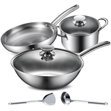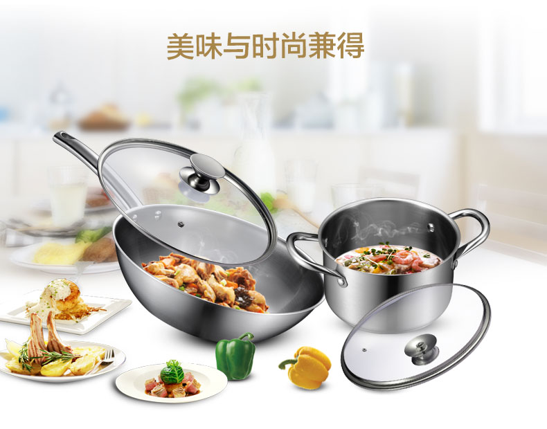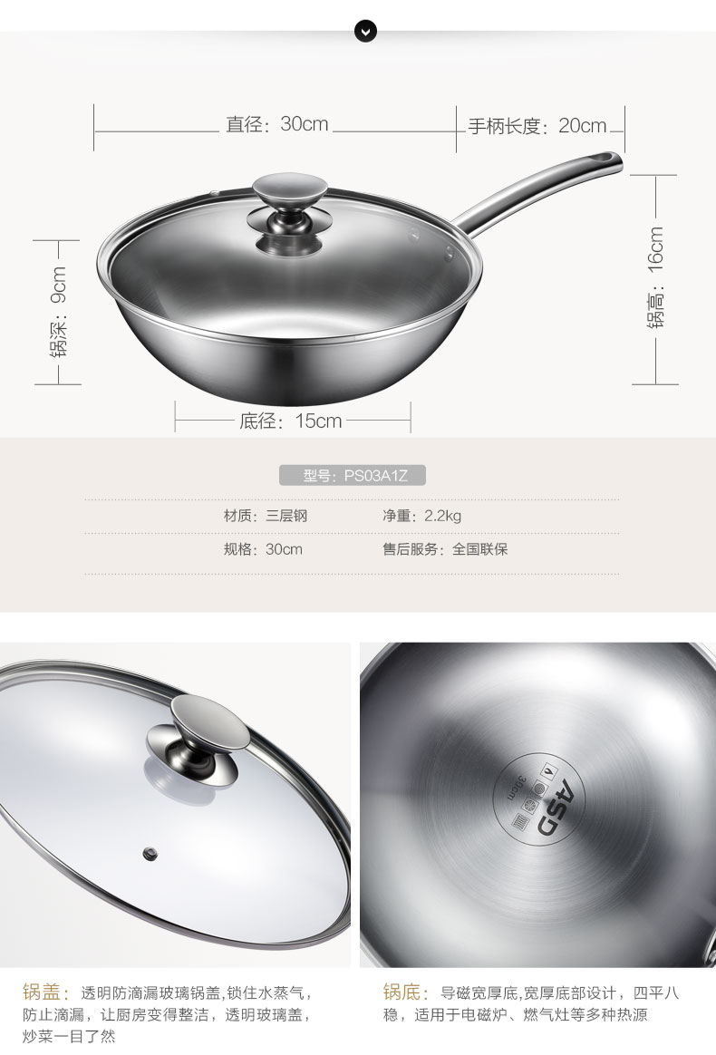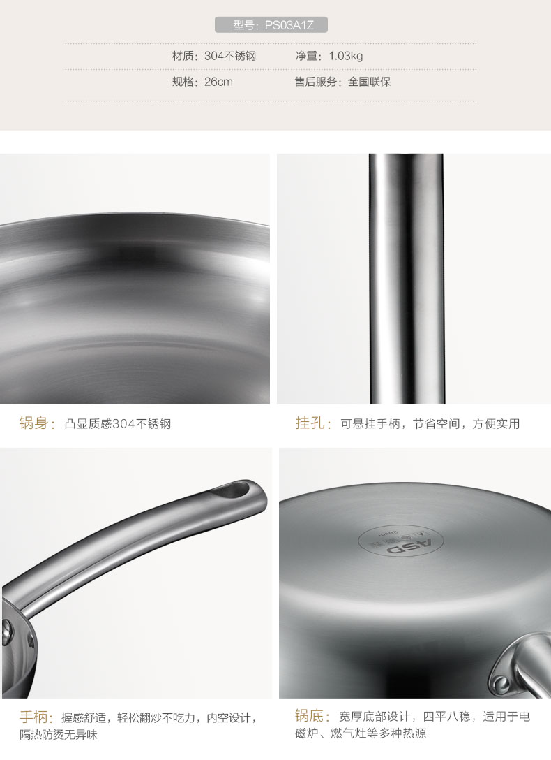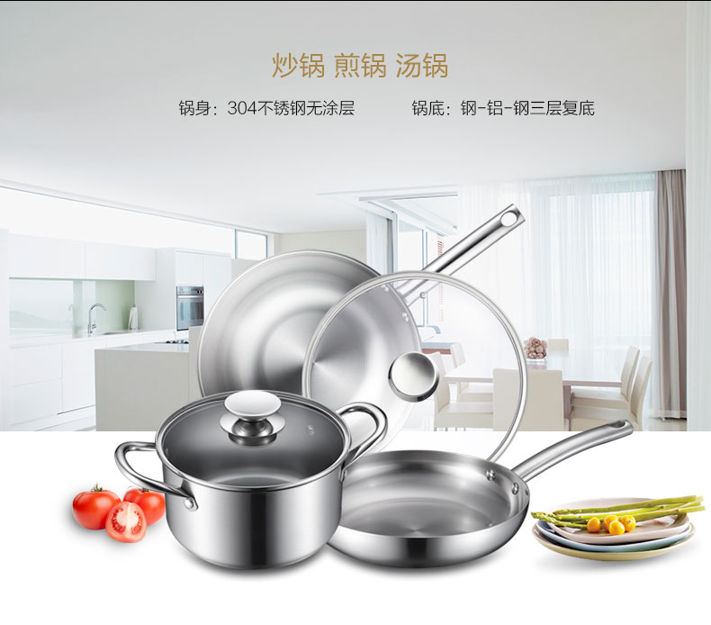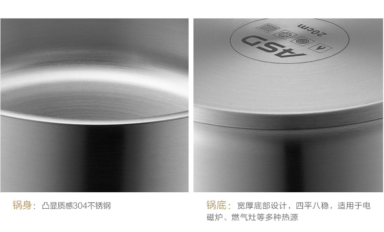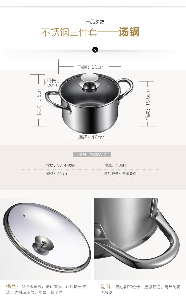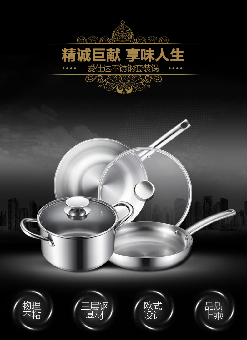 京东自营爱仕达(ASD)锅具套装俊雅不锈钢三层少油烟无涂层汤锅煎锅炒锅不锈钢锅铲锅勺五件套 PS03A1Z