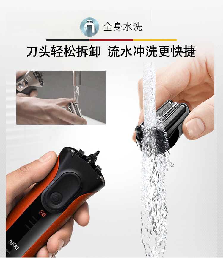 京东自营博朗(BRAUN)电动剃须刀全身水洗往复式刮胡刀德国进口三刀头3系3030s