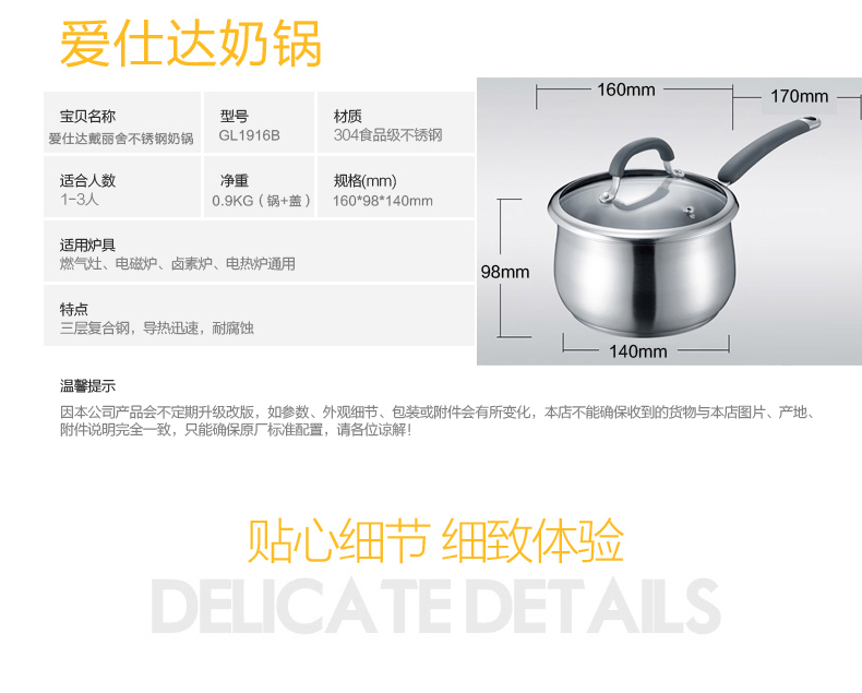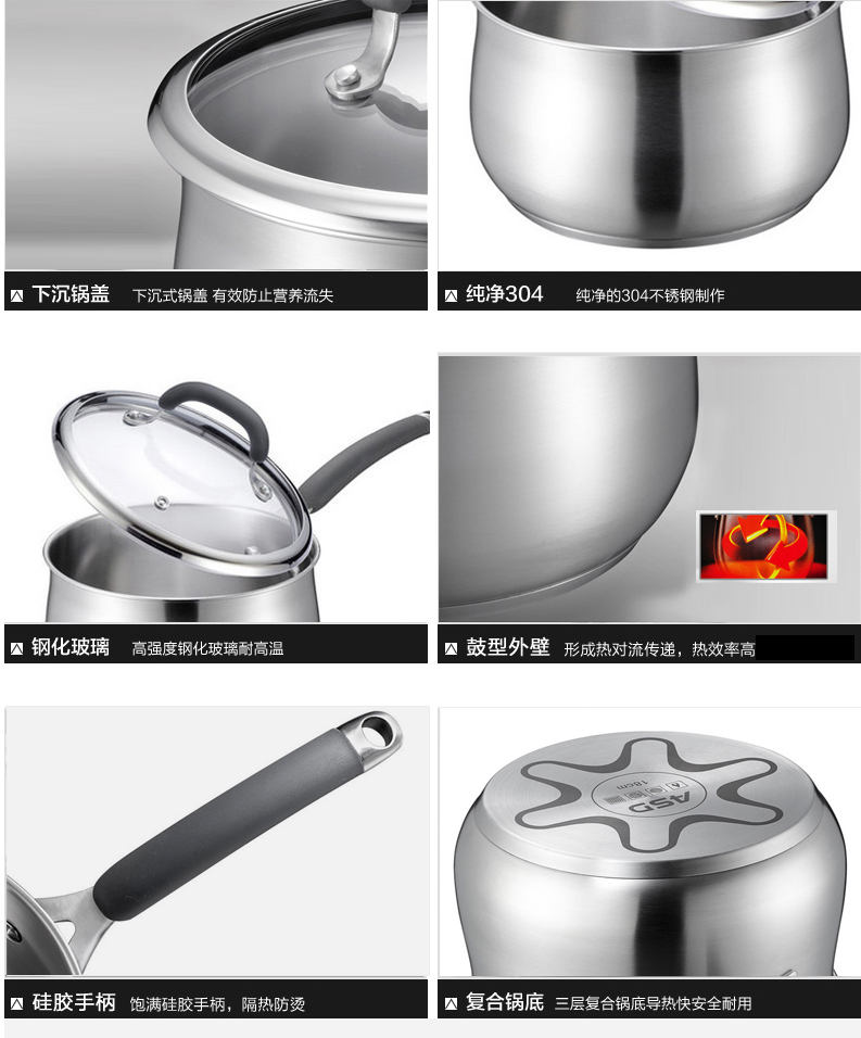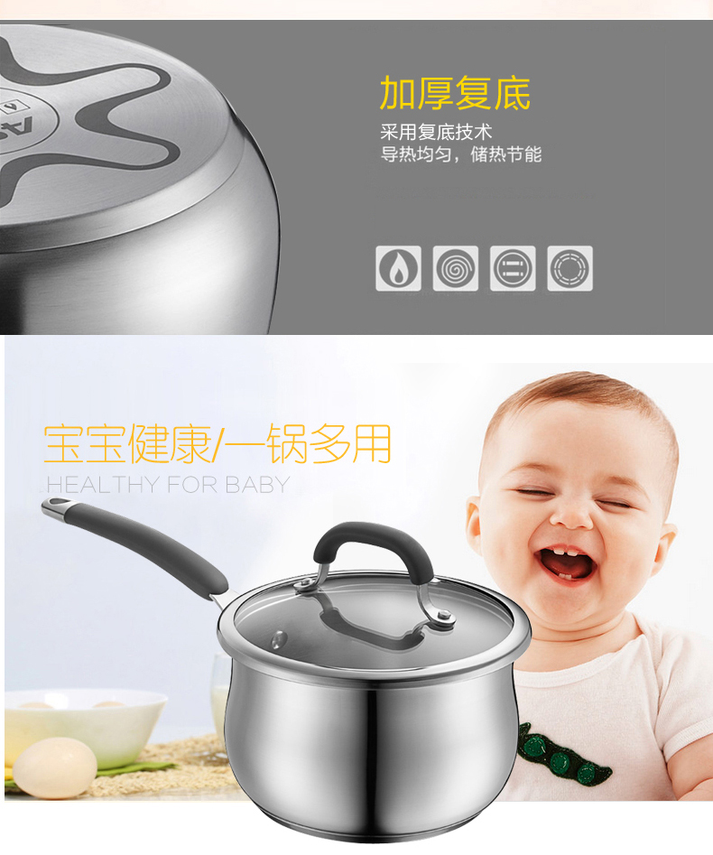 京东自营商超同款爱仕达(ASD) 小奶锅16CM泡面锅304不锈钢煮奶汤锅GL1916B