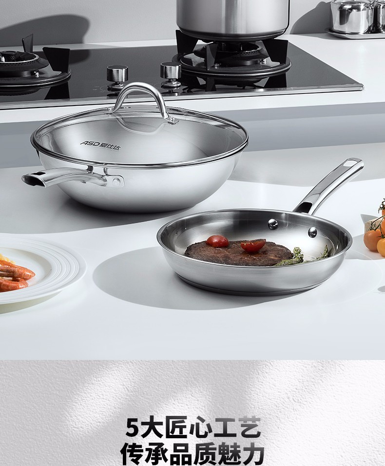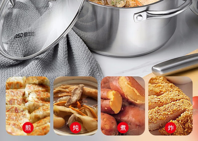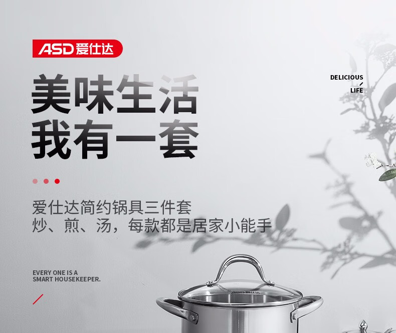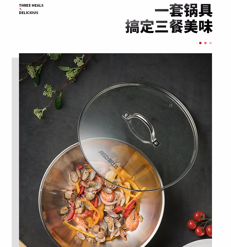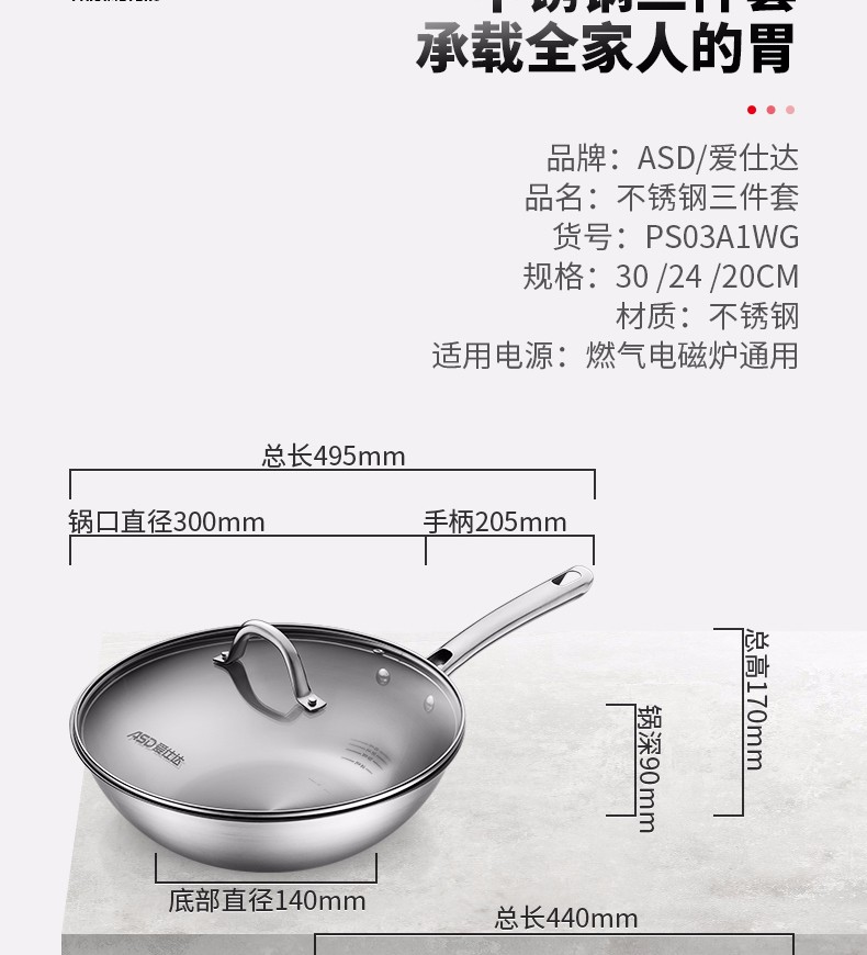 京东自营爱仕达ASD锅具套装三件套不锈钢炒锅汤锅煎锅无涂层电磁炉通用PS03A1WG