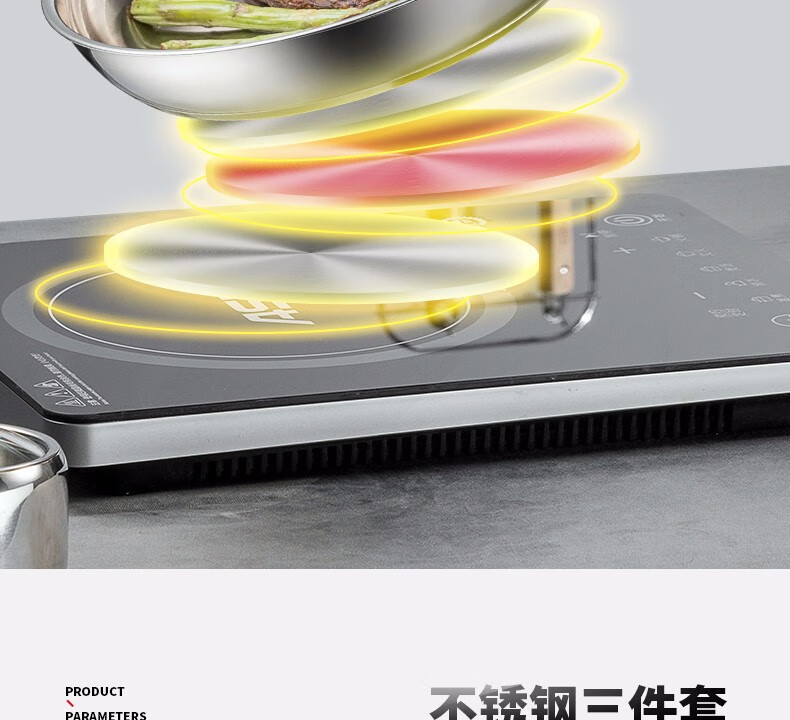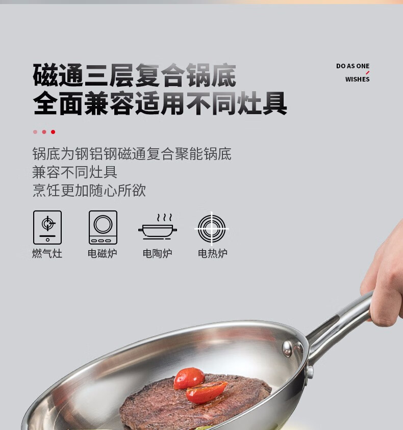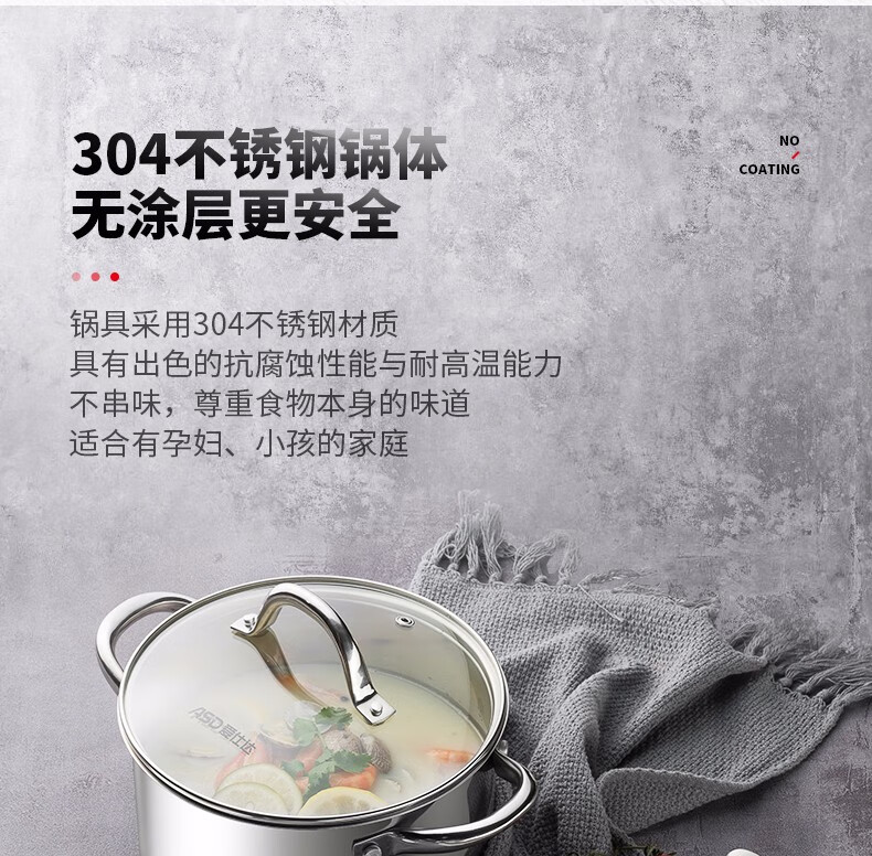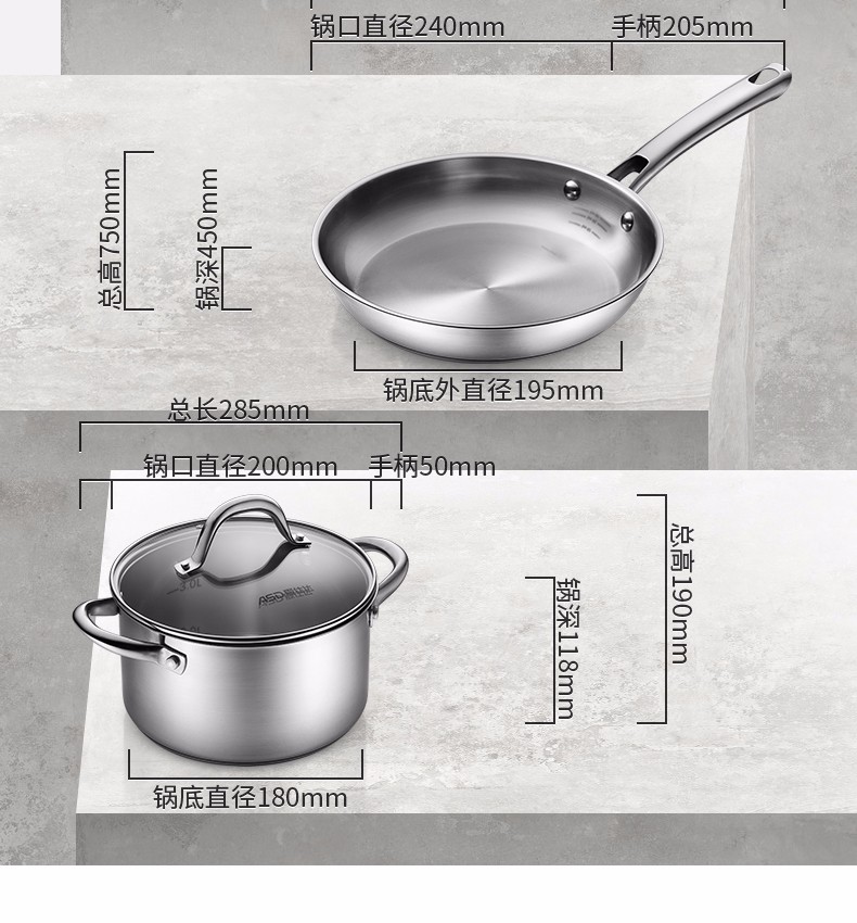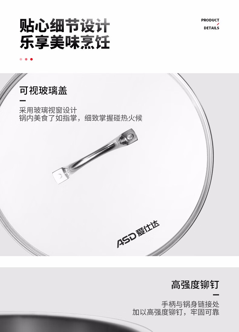 京东自营爱仕达ASD锅具套装三件套不锈钢炒锅汤锅煎锅无涂层电磁炉通用PS03A1WG