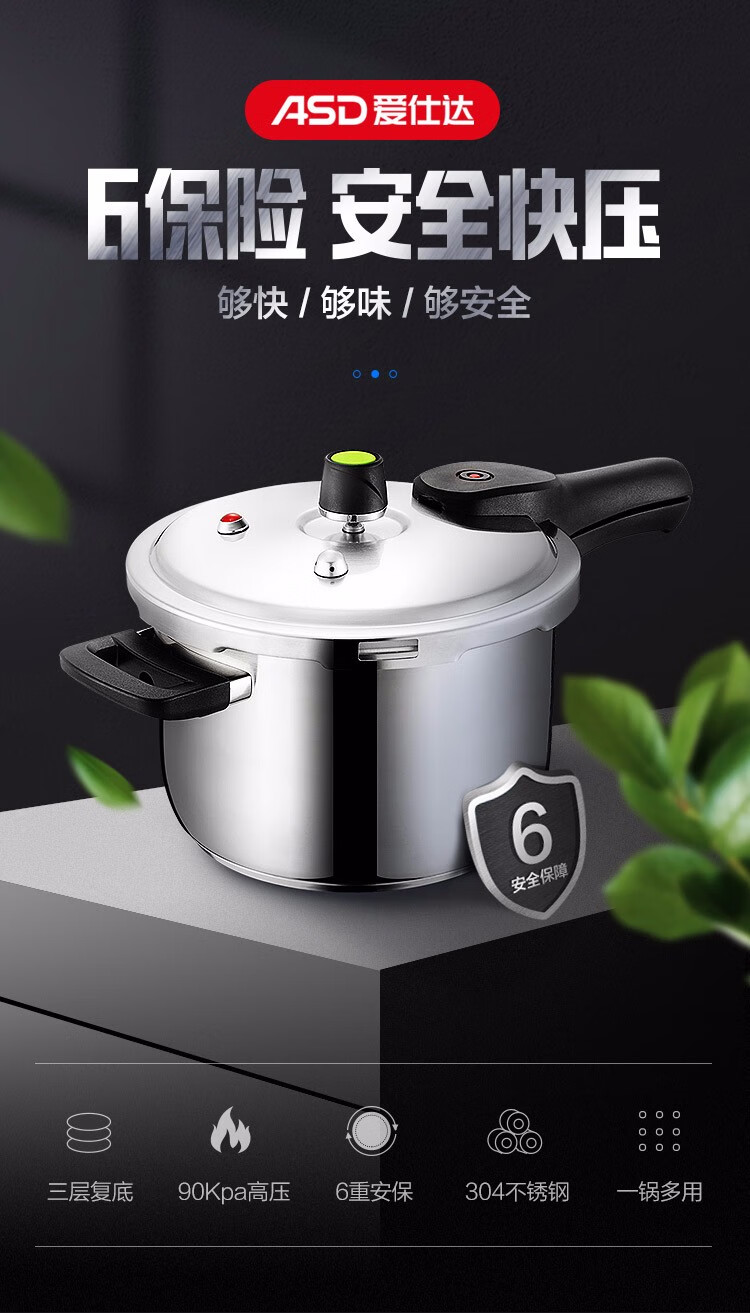 京东自营爱仕达(ASD) 高压锅燃气304不锈钢压力锅22CM电磁炉通用大容量