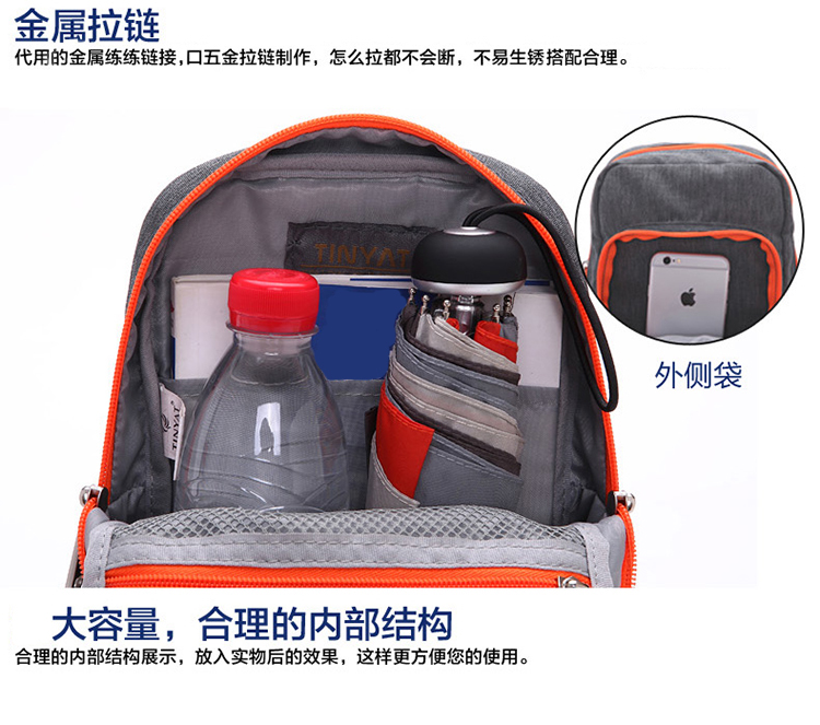 京东自营天逸TINYAT 男士胸包通用大容量户外小包潮斜挎包日韩版多口袋包 T601 灰色