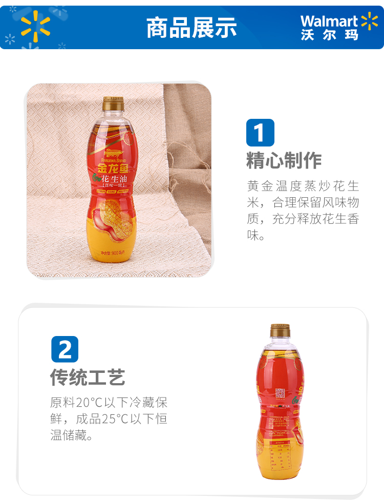 京东自营沃尔玛金龙鱼 花生油(压榨一级) (新旧包装随机发货) 900ml