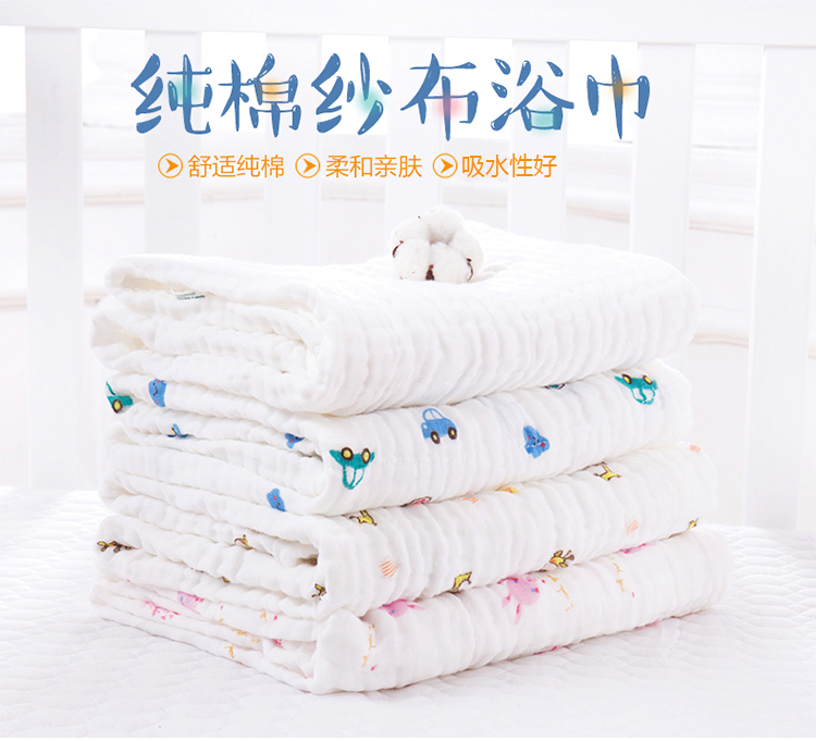 京东自营9i9久爱久婴儿浴巾宝宝纯棉空调被纱布盖毯新生儿被子包巾6层加厚四季透气款