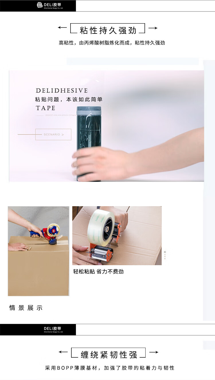 京东自营得力(deli)高品质高透明封箱胶带打包胶带 45mm*100m*50um 6卷/筒 办公用品 33193
