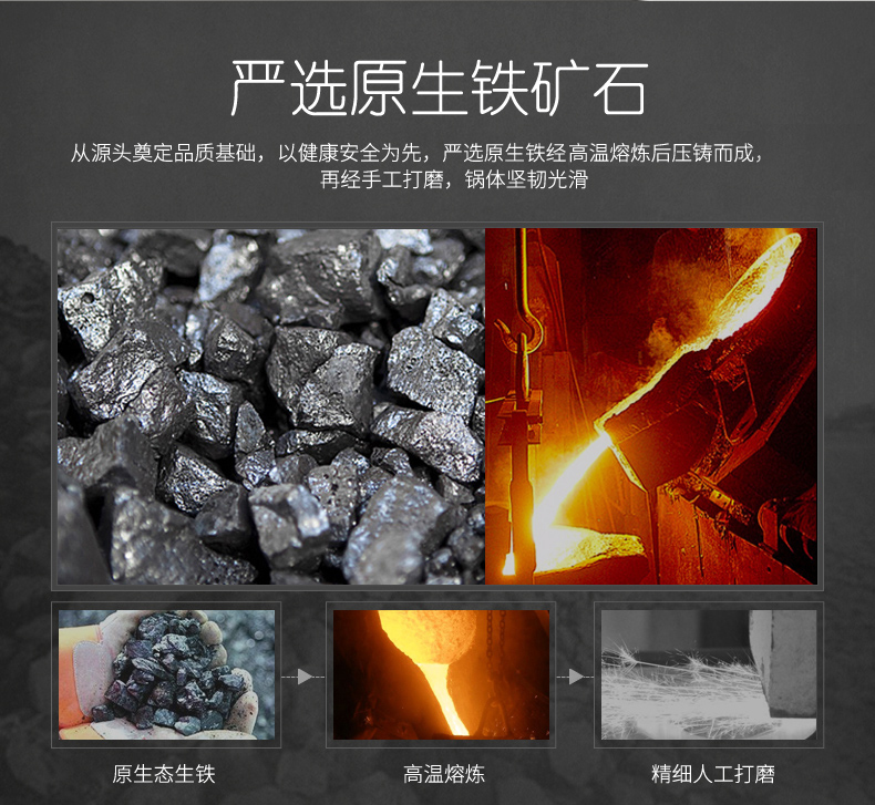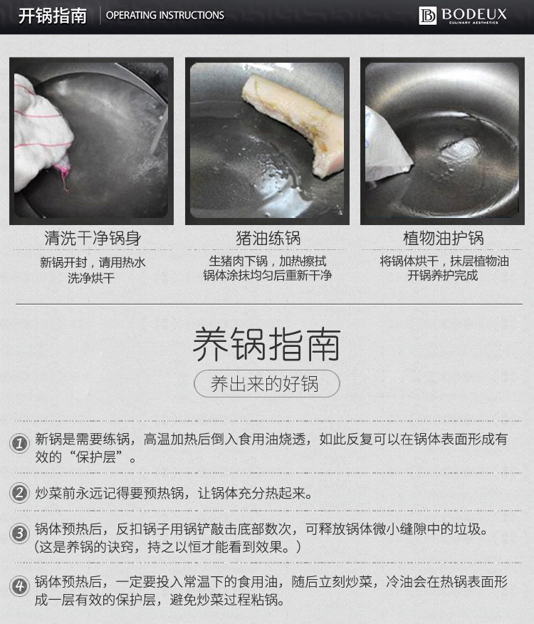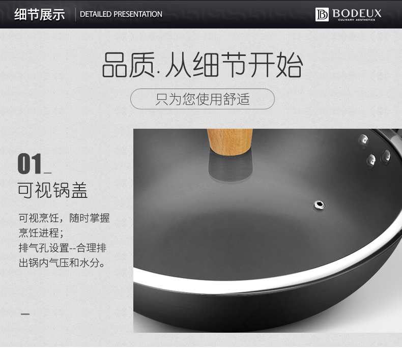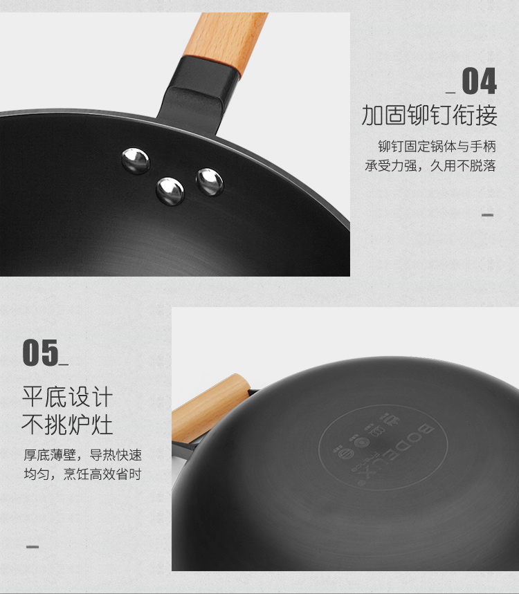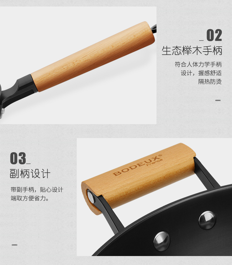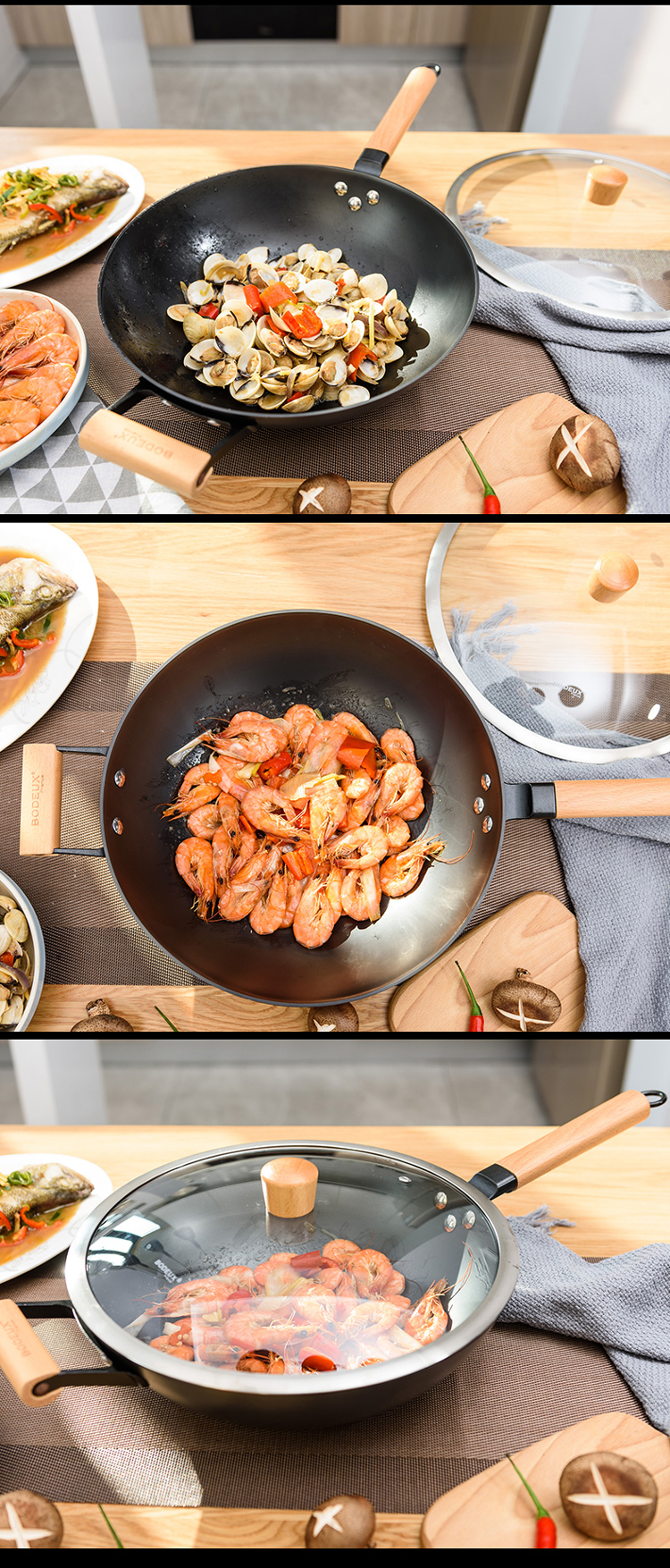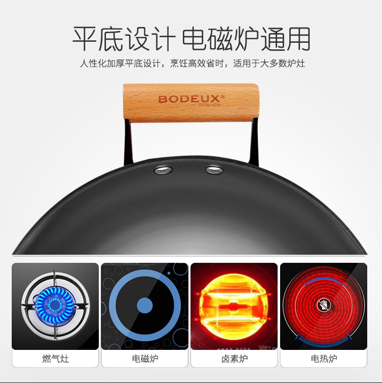 京东自营铂帝斯(BODEUX)尼斯铸铁炒锅 无涂层32cm带玻璃盖 不易生锈家用炒菜锅电 磁炉燃气通用
