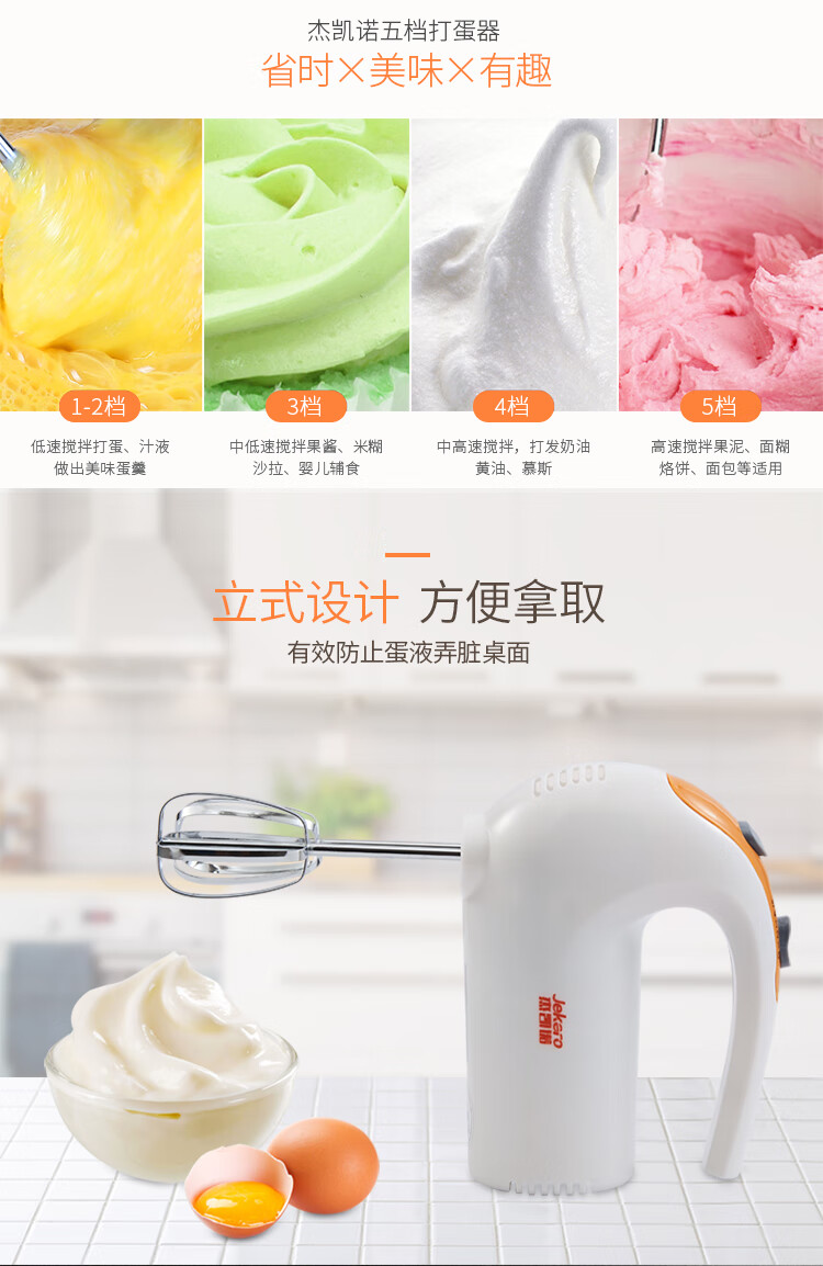 京东自营杰凯诺 烘焙工具五档功能电动手持打蛋器1分钟快速打发 304不锈钢打发头 奶油打发器
