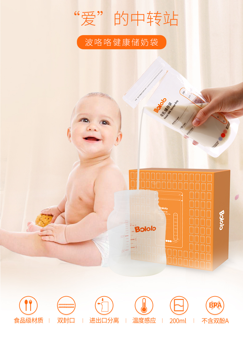 京东自营波咯咯(bololo) 母乳储存袋保鲜袋储奶袋 200ML 1盒30片 30片/袋
