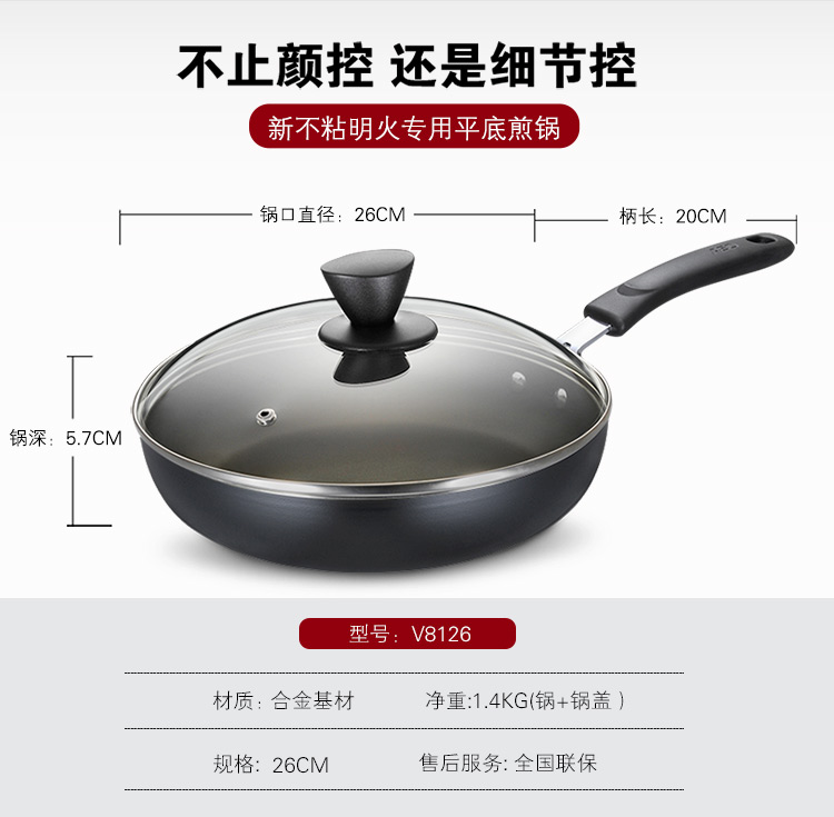 京东自营爱仕达 26CM易洁平底锅不粘锅煎锅V8126 牛排锅煎蛋锅煎饼锅