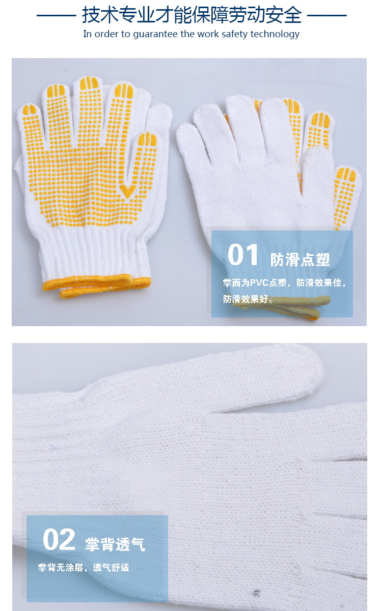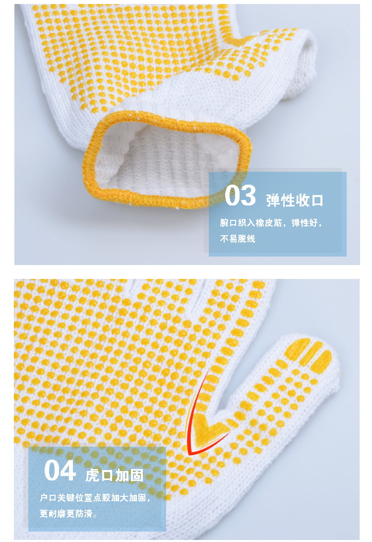 京东自营华丰巨箭 HF-6700023 劳保手套加厚耐磨滴塑涂胶防滑手套棉纱手套防护手套3副装