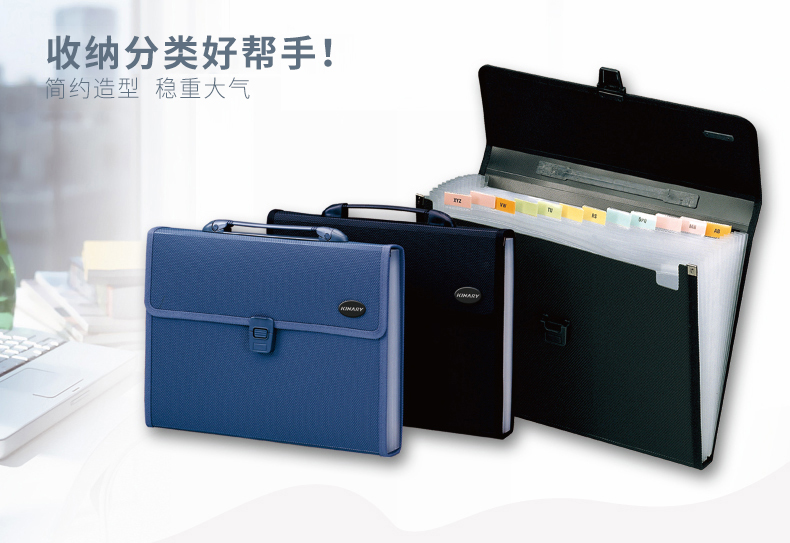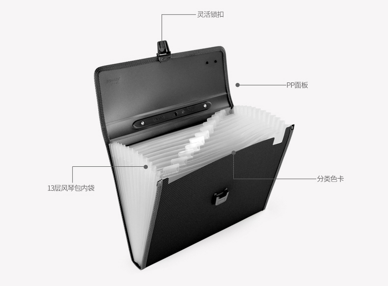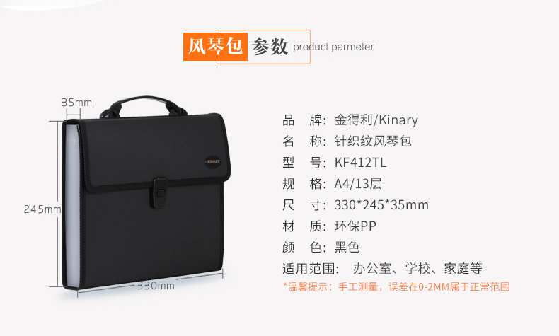 京东自营金得利 KF412TL A4针织纹多层分类文件夹13格风琴包商务公文资料收纳包初高中生手提试卷插页票据袋黑
