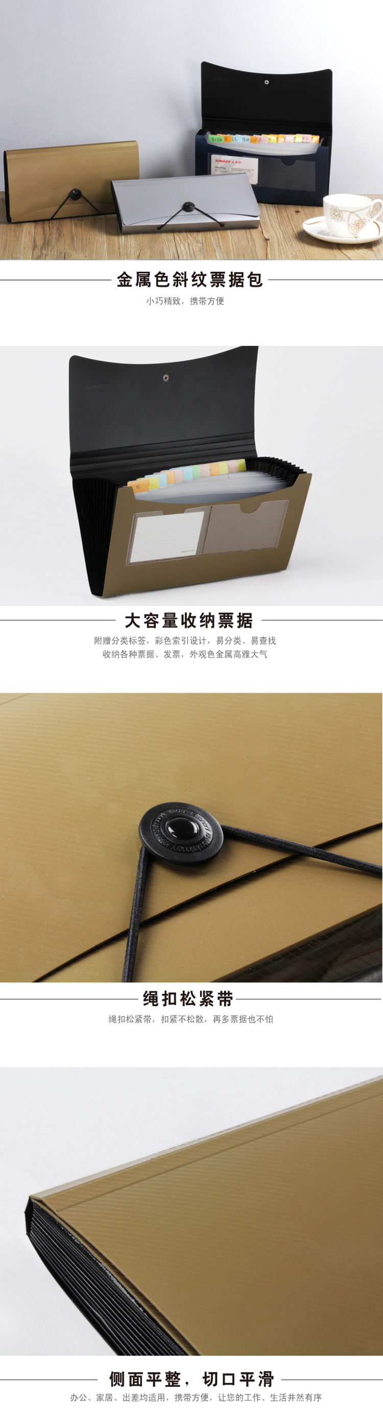 京东自营金得利 13格 check绳扣细纹风琴包 资料包 中号票据包 文件收纳袋 证卡包 SH8403C 金色