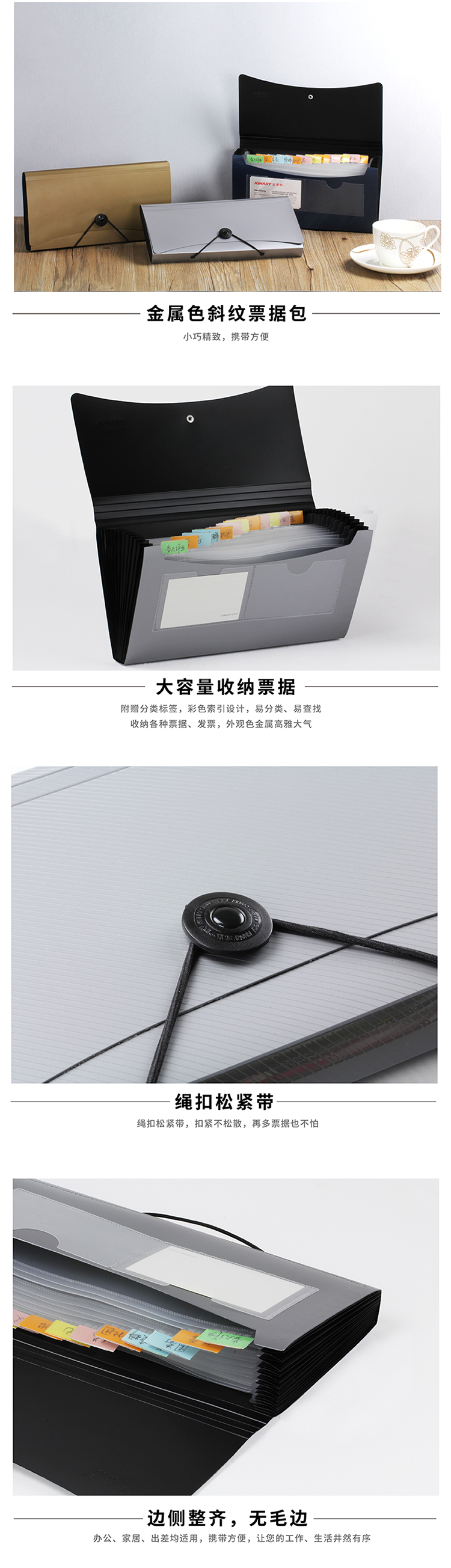 京东自营金得利 13格 check绳扣细纹财务票据包 中号风琴包 小票支票收纳夹 多层分类文件袋 银色 SH8403C