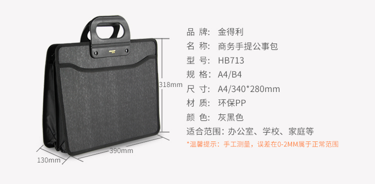 京东自营金得利 HB713 A4商务手提公事包大容量出差文件包男双层拉链袋多层插袋 会议办公文件包 黑