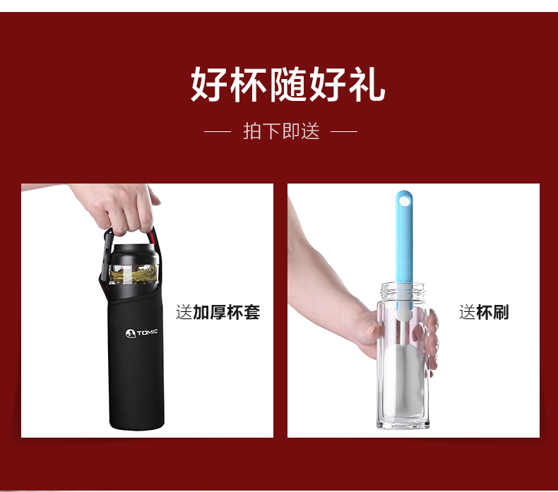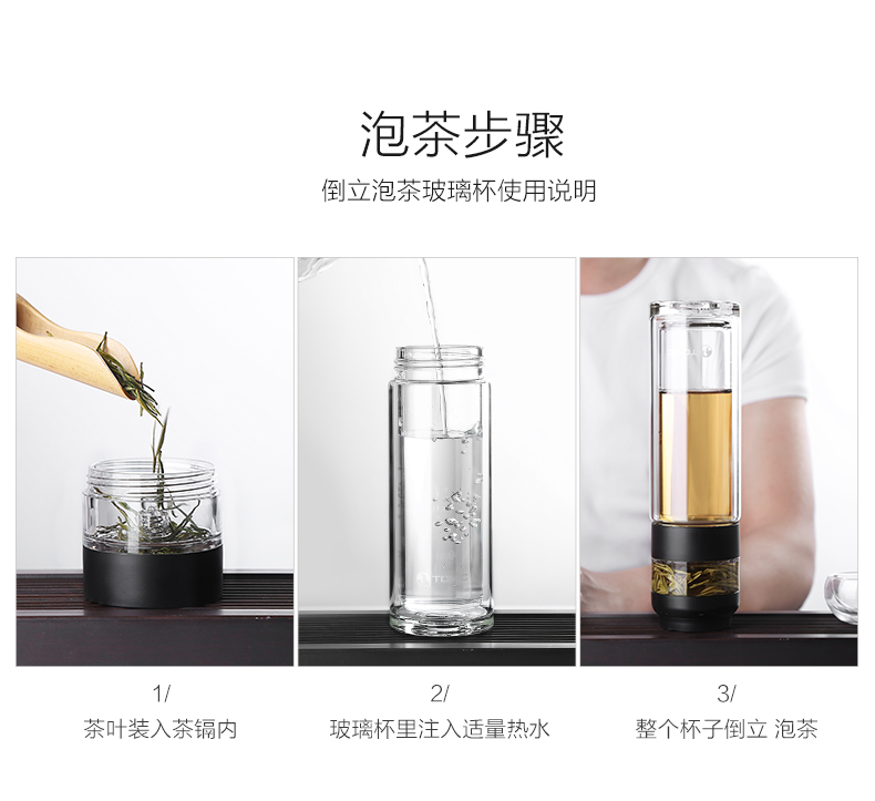 京东自营TOMIC特美刻乐茶杯双层玻璃杯男女士便携过滤水杯子茶水分离创意随手泡茶杯 黑色