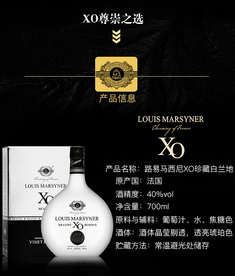 京东自营正规授权法国原瓶进口洋酒路易马西尼(Louis Marsyner)40度礼盒装 XO白兰地单支礼盒装700ml