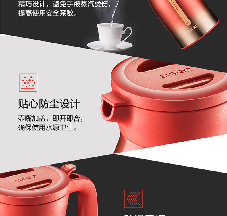 京东自营苏泊尔(SUPOR)真空保温壶家用304不锈钢保温瓶开热水瓶欧式超大容量暖壶热水瓶 2.3L 魔力黑 2.3升
